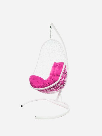 Подвесное кресло ОВАЛ с ротангом цвет ротанга: белый; цвет ткани: розовый