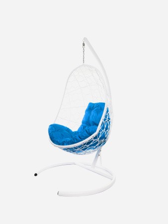 Подвесное кресло ОВАЛ с ротангом цвет ротанга: белый; цвет ткани: синий