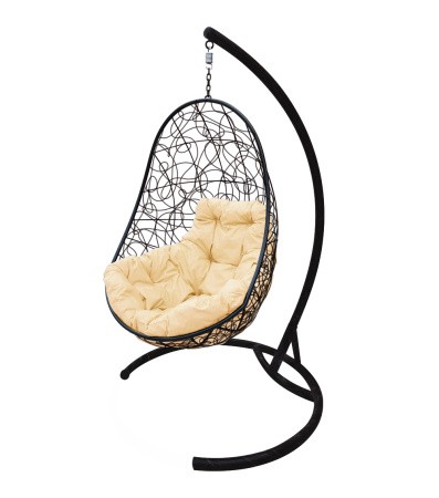 Подвесное кресло ОВАЛ с ротангом цвет ротанга: черный; цвет ткани: бежевый