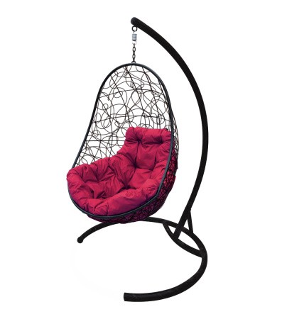 Подвесное кресло ОВАЛ с ротангом цвет ротанга: черный; цвет ткани: бордовый