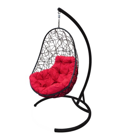 Подвесное кресло ОВАЛ с ротангом цвет ротанга: черный; цвет ткани: красный