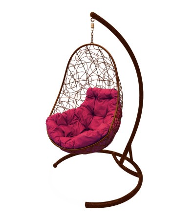 Подвесное кресло ОВАЛ с ротангом цвет ротанга: коричневый; цвет ткани: бордовый
