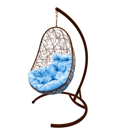 Подвесное кресло ОВАЛ с ротангом цвет ротанга: коричневый; цвет ткани: голубой
