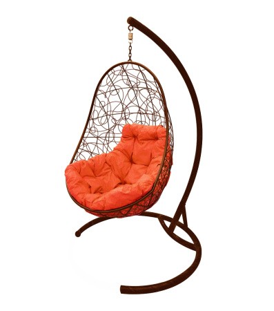 Подвесное кресло ОВАЛ с ротангом цвет ротанга: коричневый; цвет ткани: оранжевый