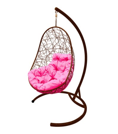 Подвесное кресло ОВАЛ с ротангом цвет ротанга: коричневый; цвет ткани: розовый