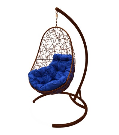 Подвесное кресло ОВАЛ с ротангом цвет ротанга: коричневый; цвет ткани: синий