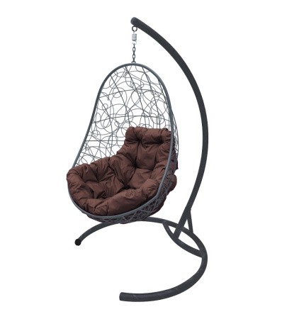 Подвесное кресло ОВАЛ с ротангом цвет ротанга: серый; цвет ткани: коричневый