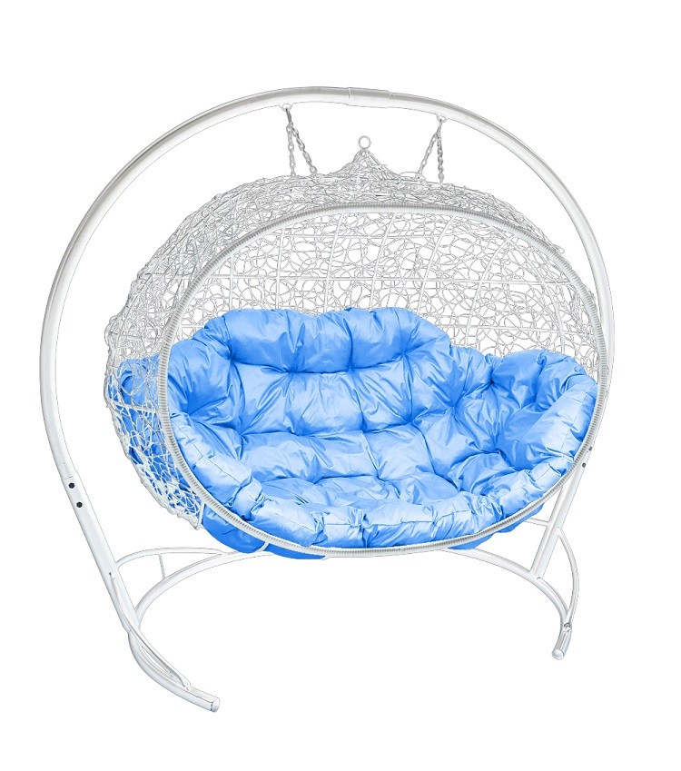 ПОДВЕСНОЕ КРЕСЛО "УЛЕЙ" ЦВЕТ РОТАНГ: БЕЛЫЙ ; ПОДУШКА: ГОЛУБОЙ Белый/Голубой