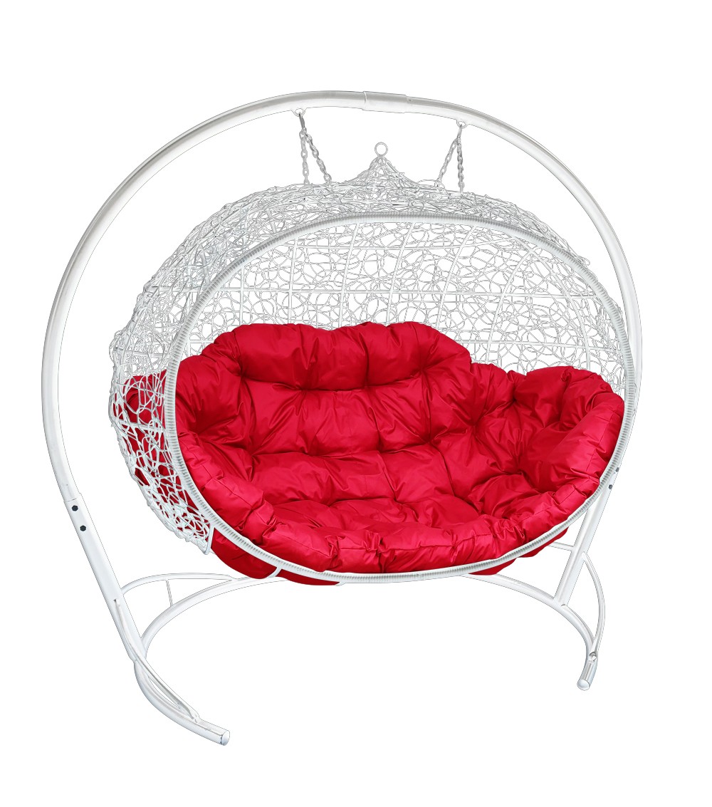 ПОДВЕСНОЕ КРЕСЛО "УЛЕЙ" ЦВЕТ РОТАНГ: БЕЛЫЙ ; ПОДУШКА: МАЛИНОВЫЙ Белый/Малиновый