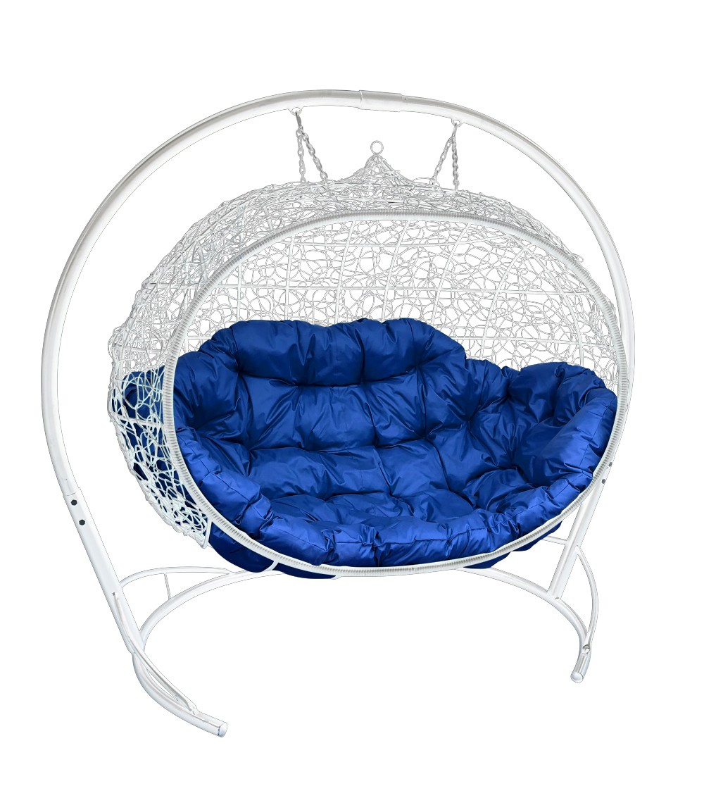 ПОДВЕСНОЕ КРЕСЛО "УЛЕЙ" ЦВЕТ РОТАНГ: БЕЛЫЙ ; ПОДУШКА: СИНИЙ Белый/синий