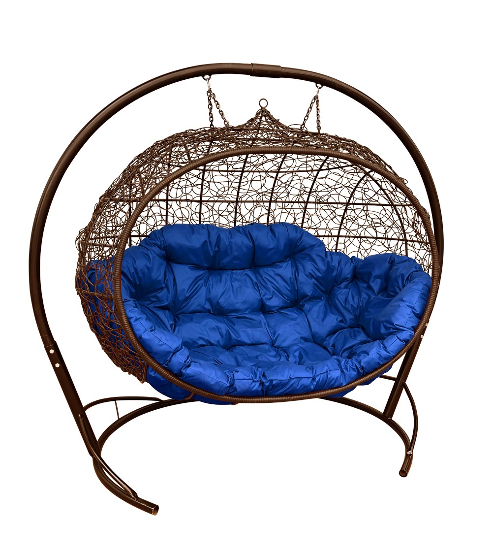 ПОДВЕСНОЕ КРЕСЛО "УЛЕЙ" ЦВЕТ РОТАНГ: КОРИЧНЕВЫЙ ; ЦВЕТ: СИНИЙ Коричневый/Синий