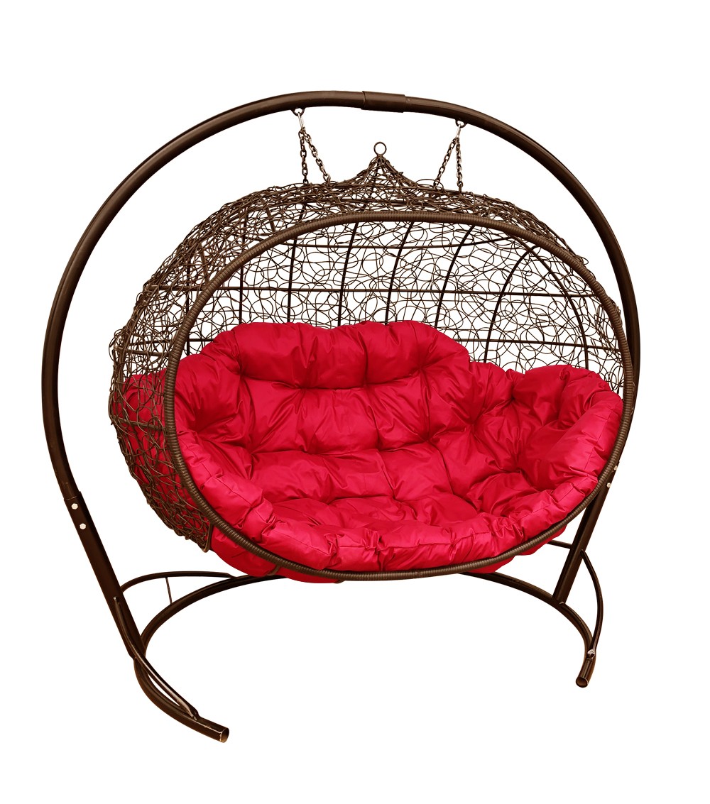 ПОДВЕСНОЕ КРЕСЛО "УЛЕЙ" ЦВЕТ РОТАНГ: КОРИЧНЕВЫЙ ; ПОДУШКА: МАЛИНОВЫЙ Коричневый/Малиновый