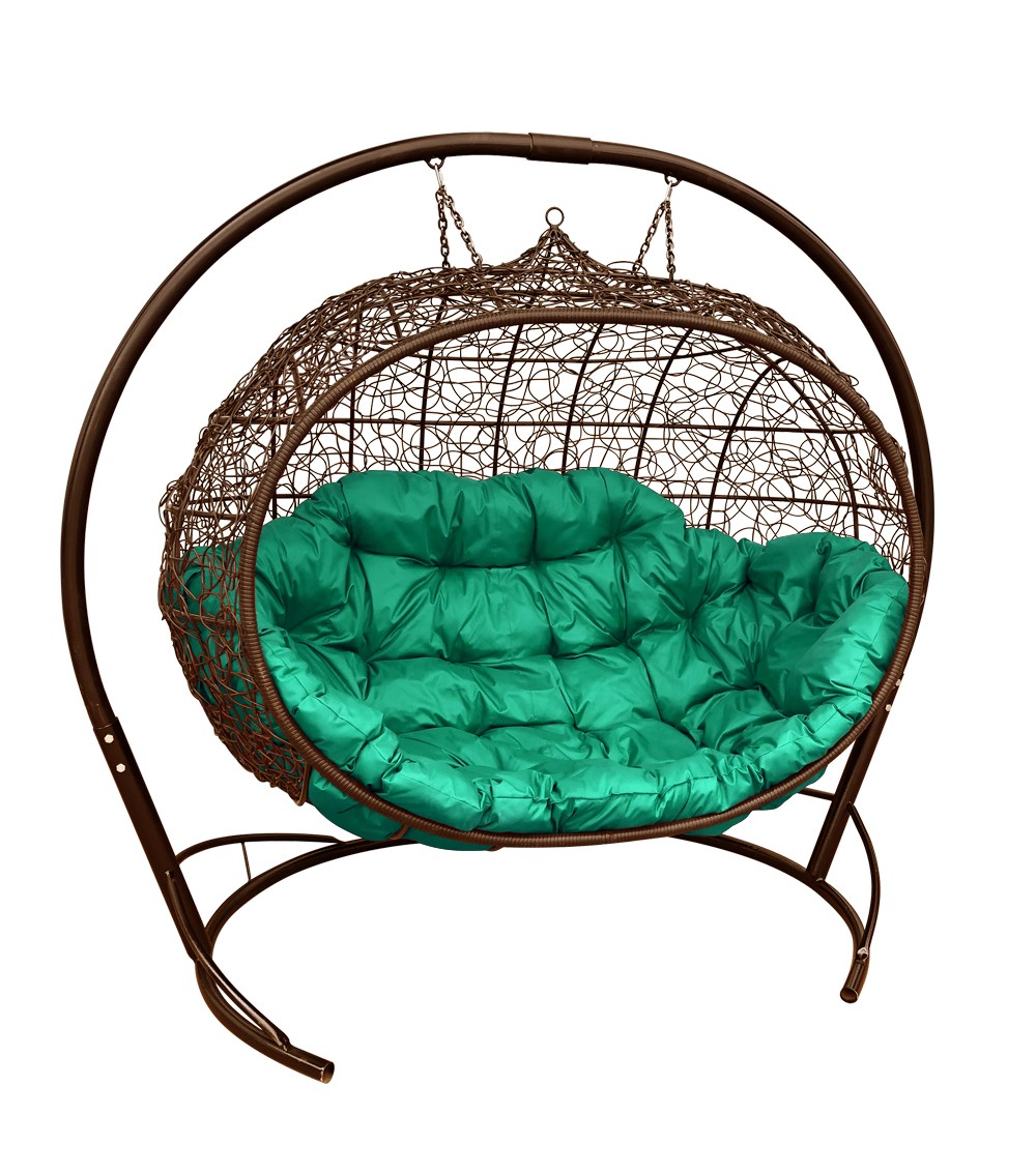 ПОДВЕСНОЕ КРЕСЛО "УЛЕЙ" ЦВЕТ РОТАНГ: КОРИЧНЕВЫЙ ; ПОДУШКА: ЗЕЛЕНЫЙ Коричневый/зеленый