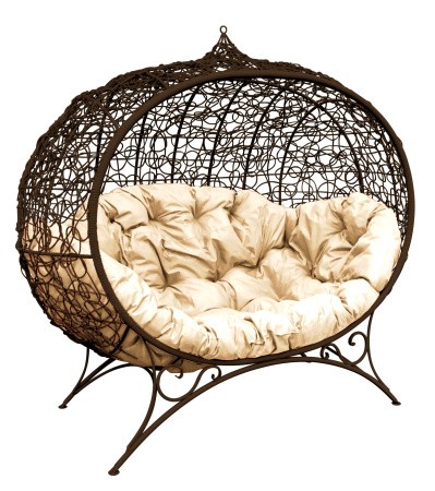 Диван "УЛЕЙ" на ножках с ротангом коричневый, бежевая подушка Белый/Бежевый