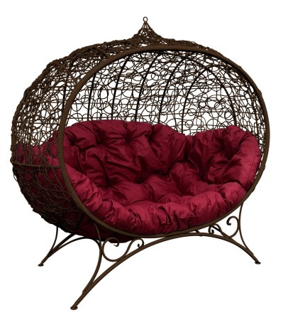 Диван "УЛЕЙ" на ножках с ротангом коричневый, бордовая подушка коричневый/бежевый
