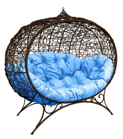 Диван "УЛЕЙ" на ножках с ротангом коричневый, голубая подушка Черный/Бежевый