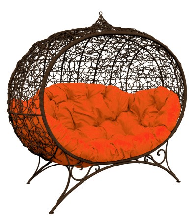 Диван "УЛЕЙ" на ножках с ротангом коричневый, оранжевая подушка Белый/Зеленый