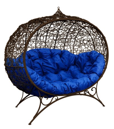 Диван "УЛЕЙ" на ножках с ротангом коричневый, синяя подушка Белый/Малиновый