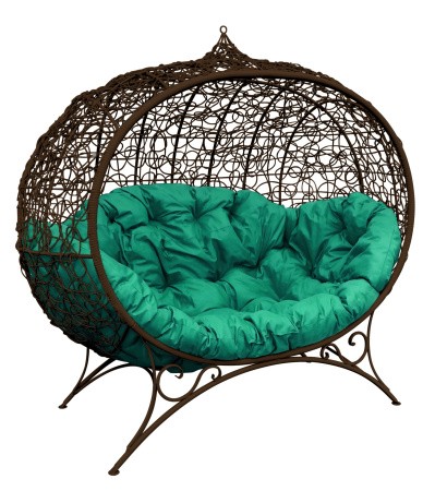 Диван "УЛЕЙ" на ножках с ротангом коричневый, зелёная подушка Белый/Бордо