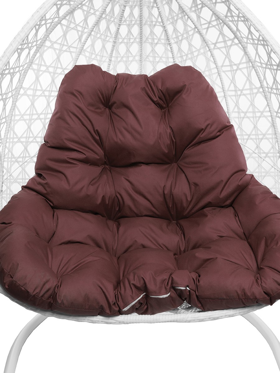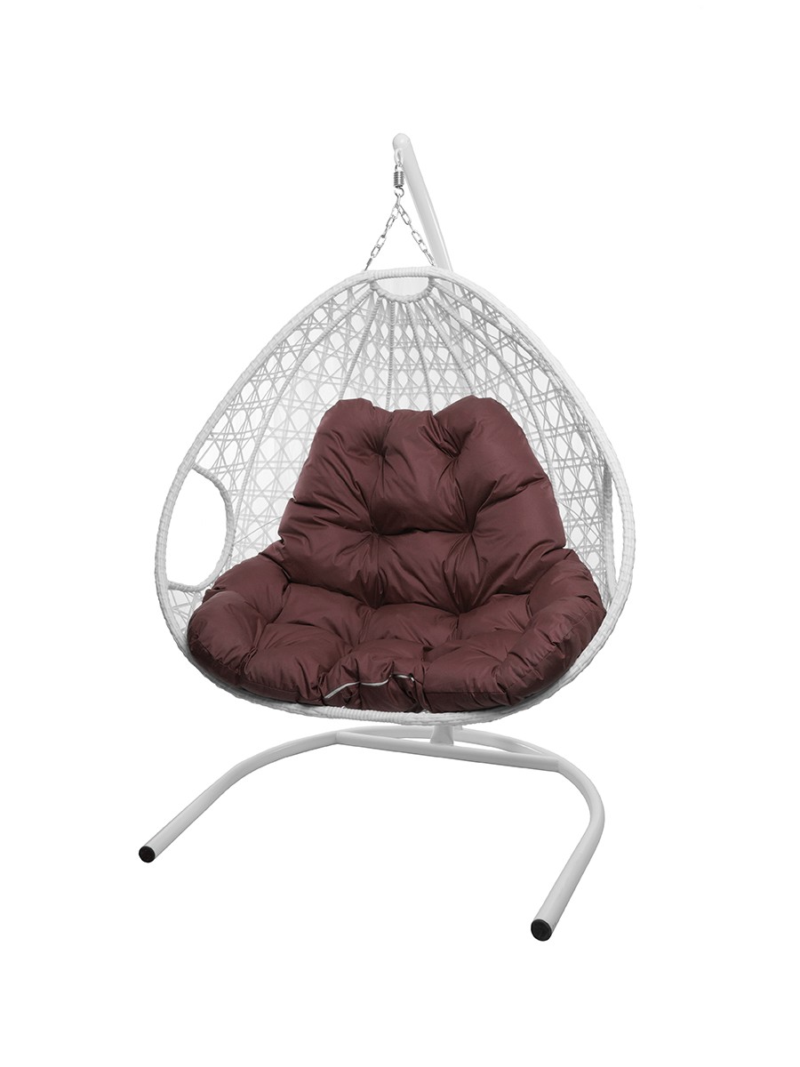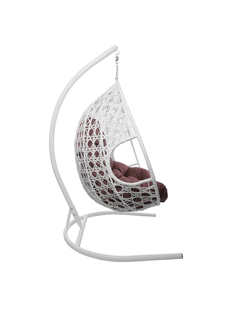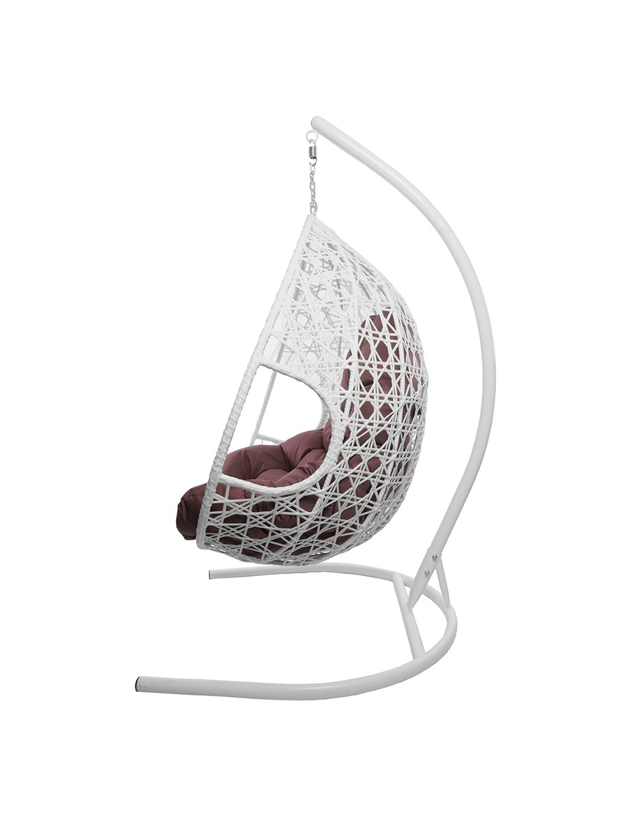 Подвесное кресло из ротанга "Для двоих" цвет: Белый; подушка: Бордо Белый/Бордо
