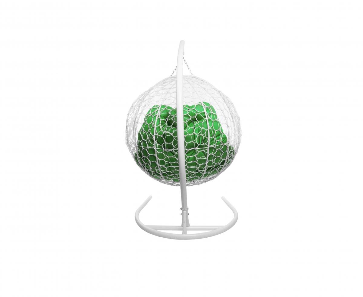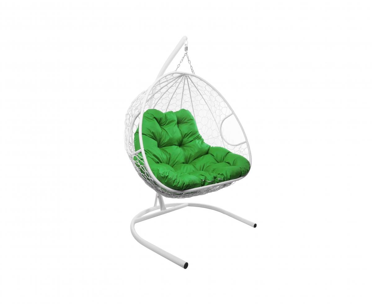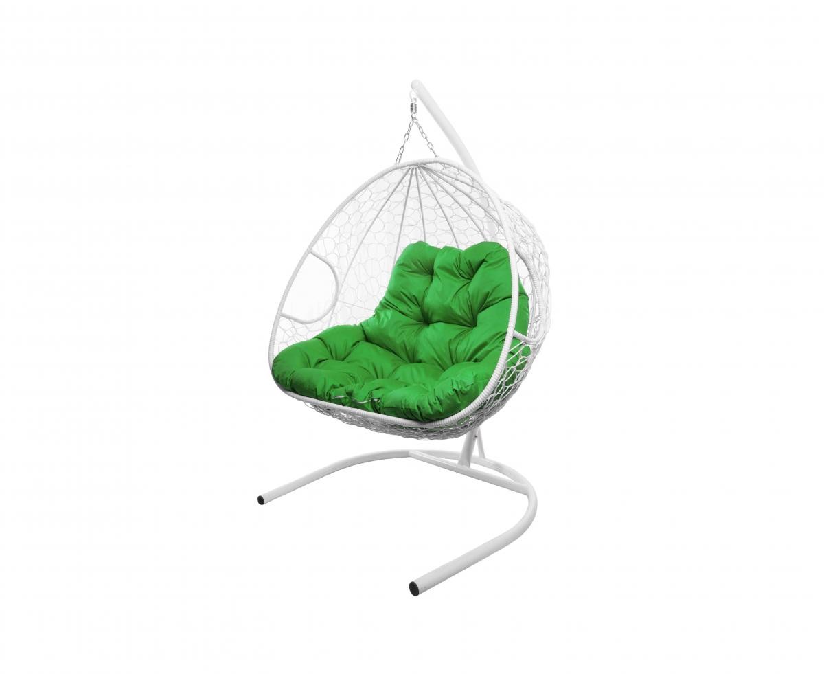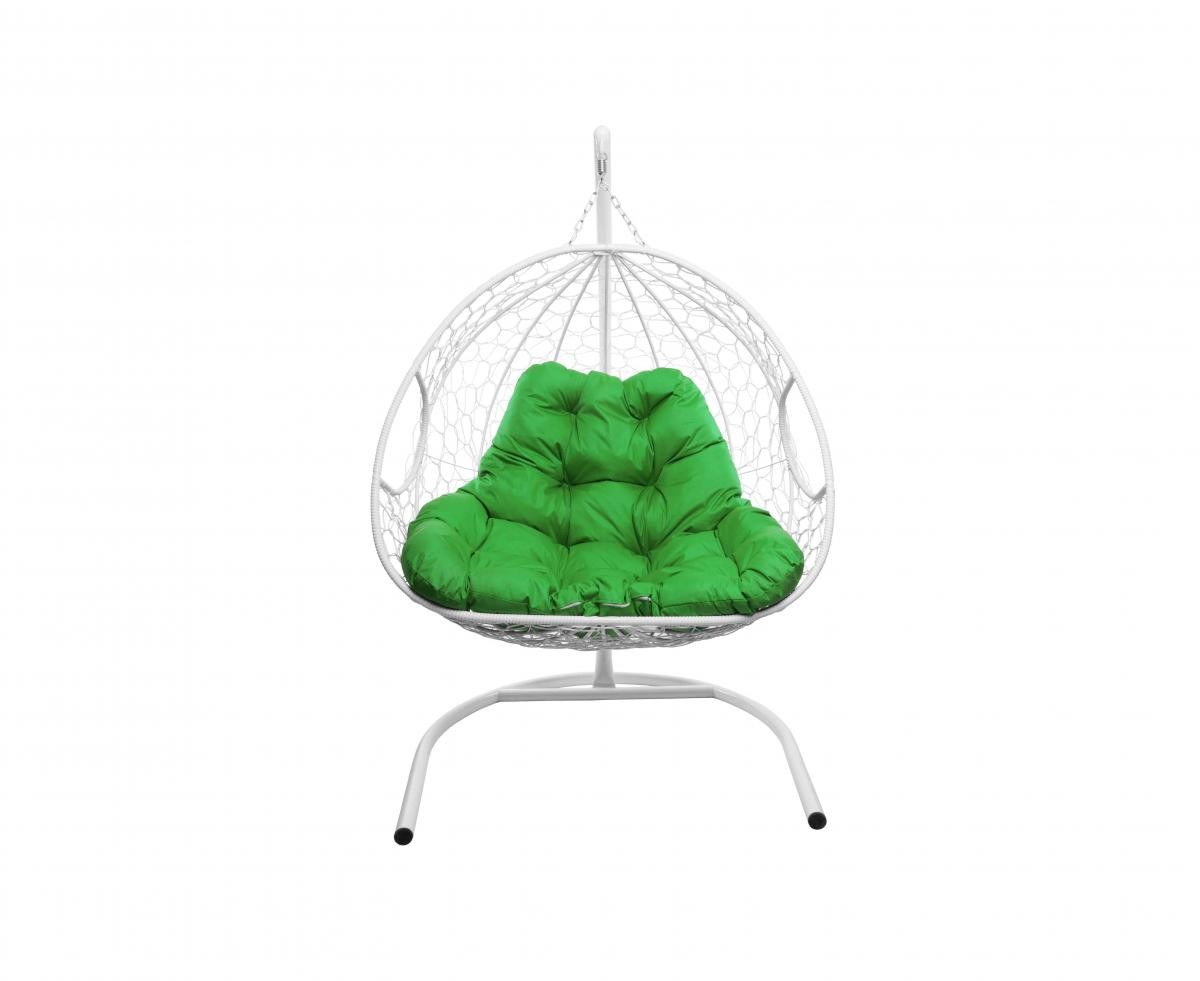 Подвесное кресло из ротанга "Для двоих" цвет Белый; подушка: Зелёная Белый/Зеленый