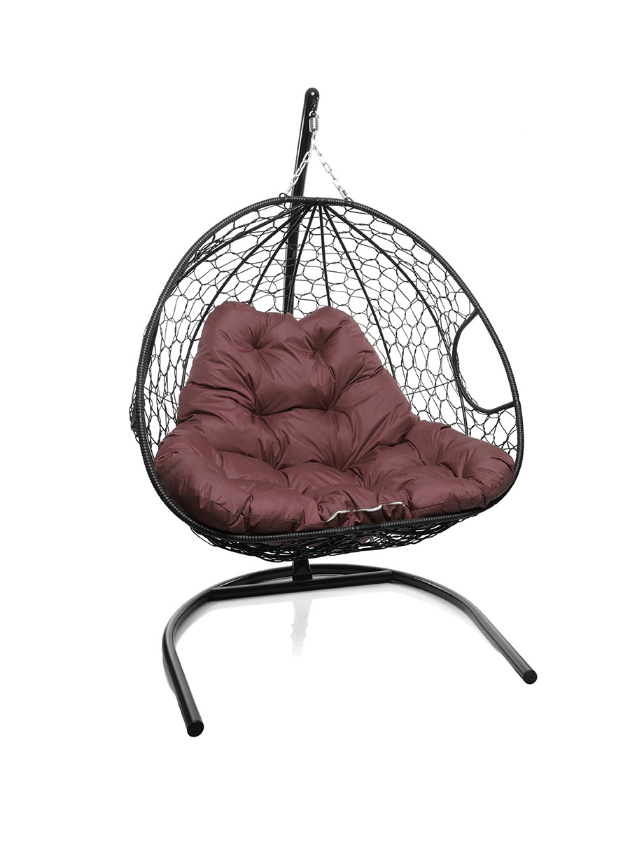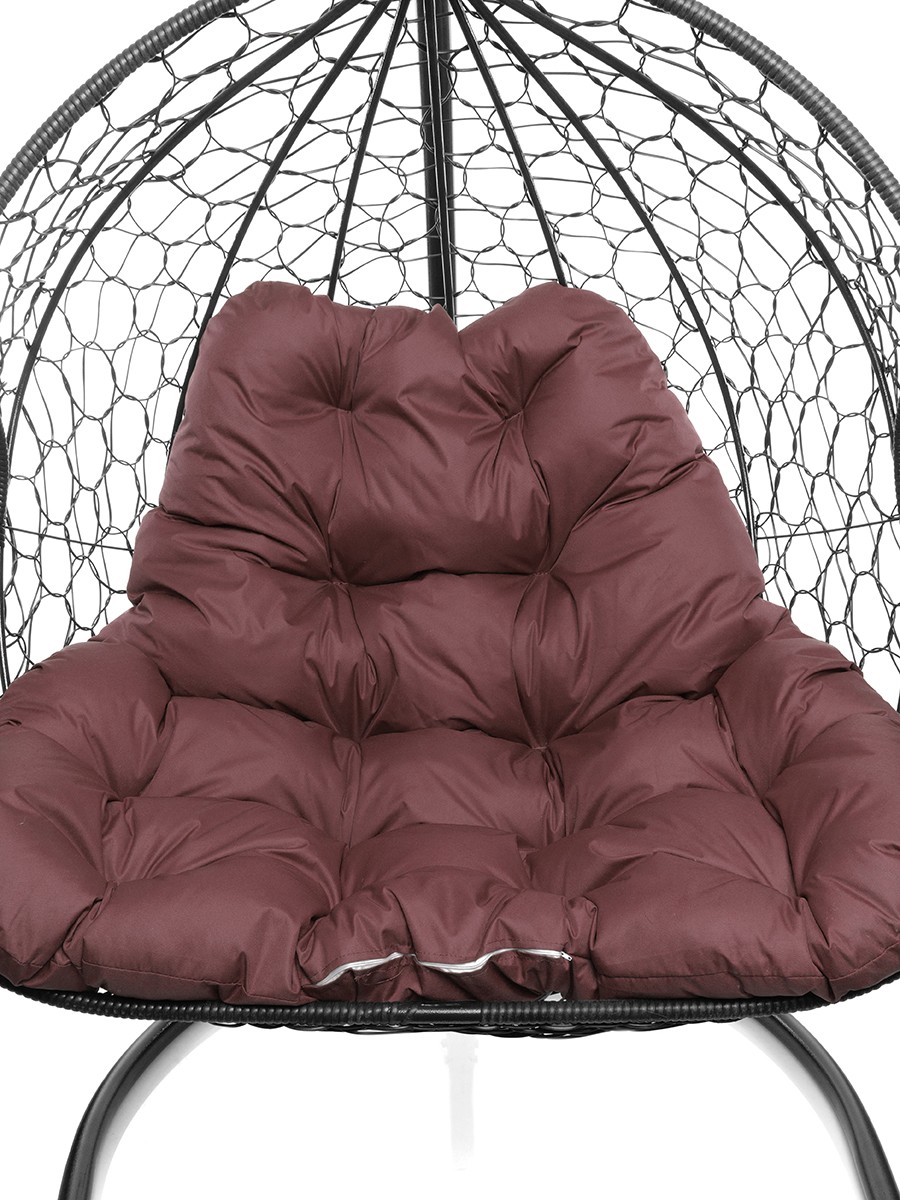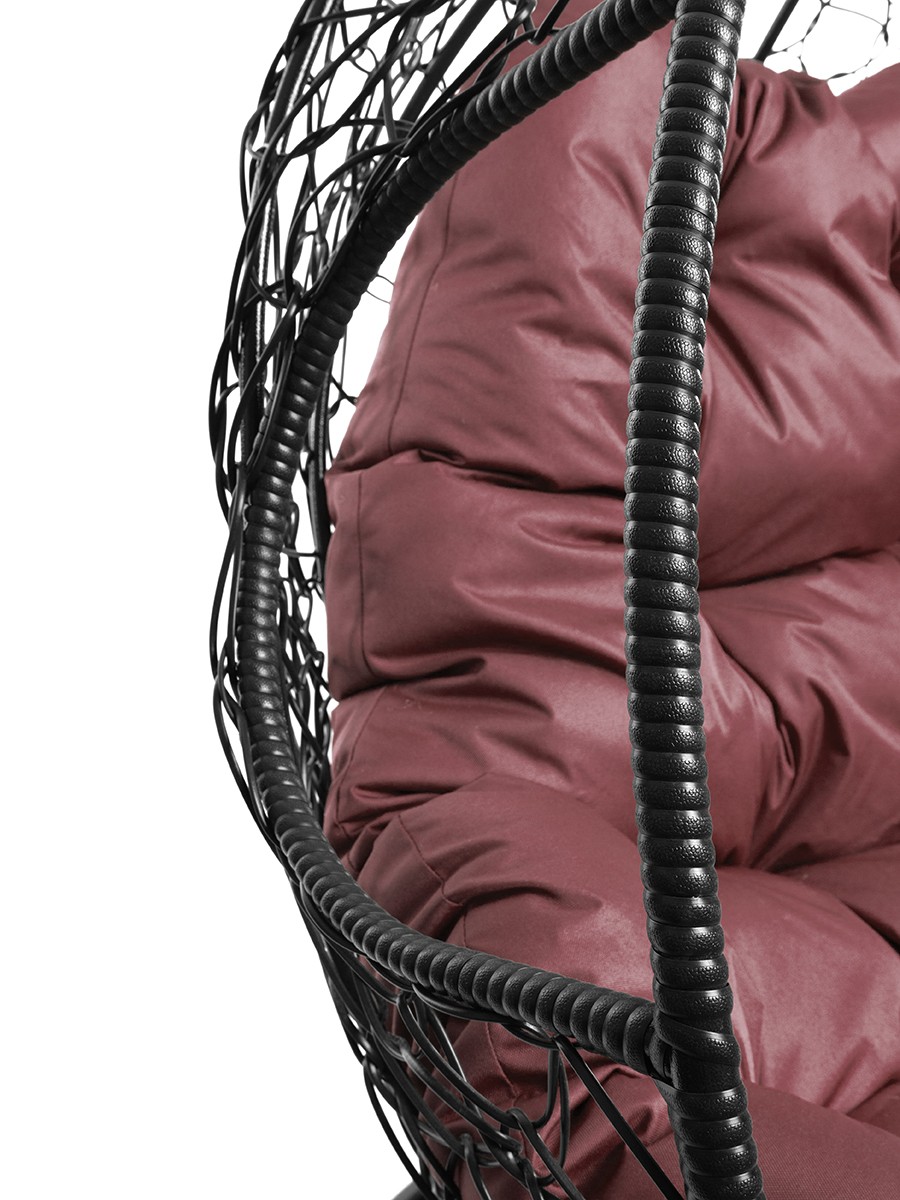Подвесное кресло из ротанга "Для двоих" цвет: Чёрный; подушка: Бордо Чёрный/Бордо