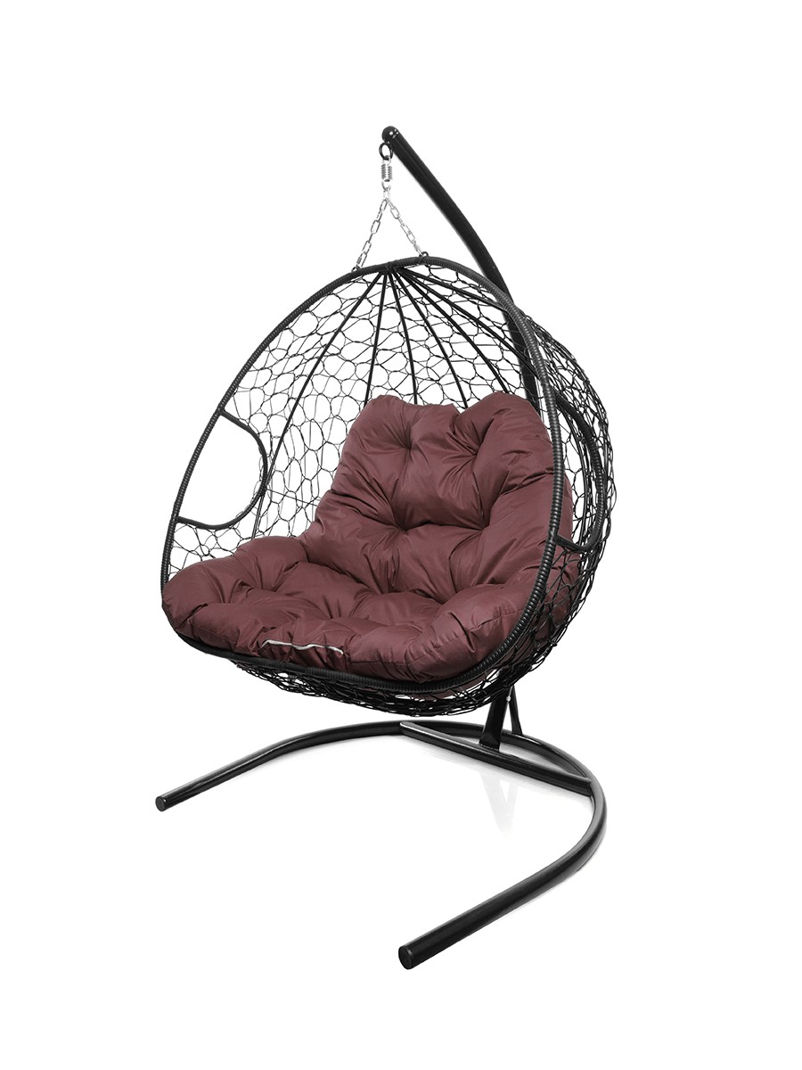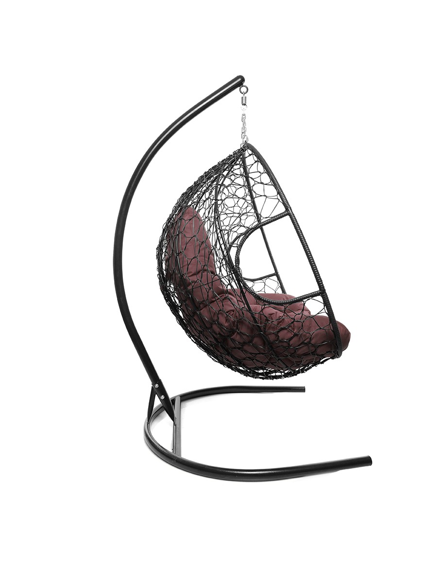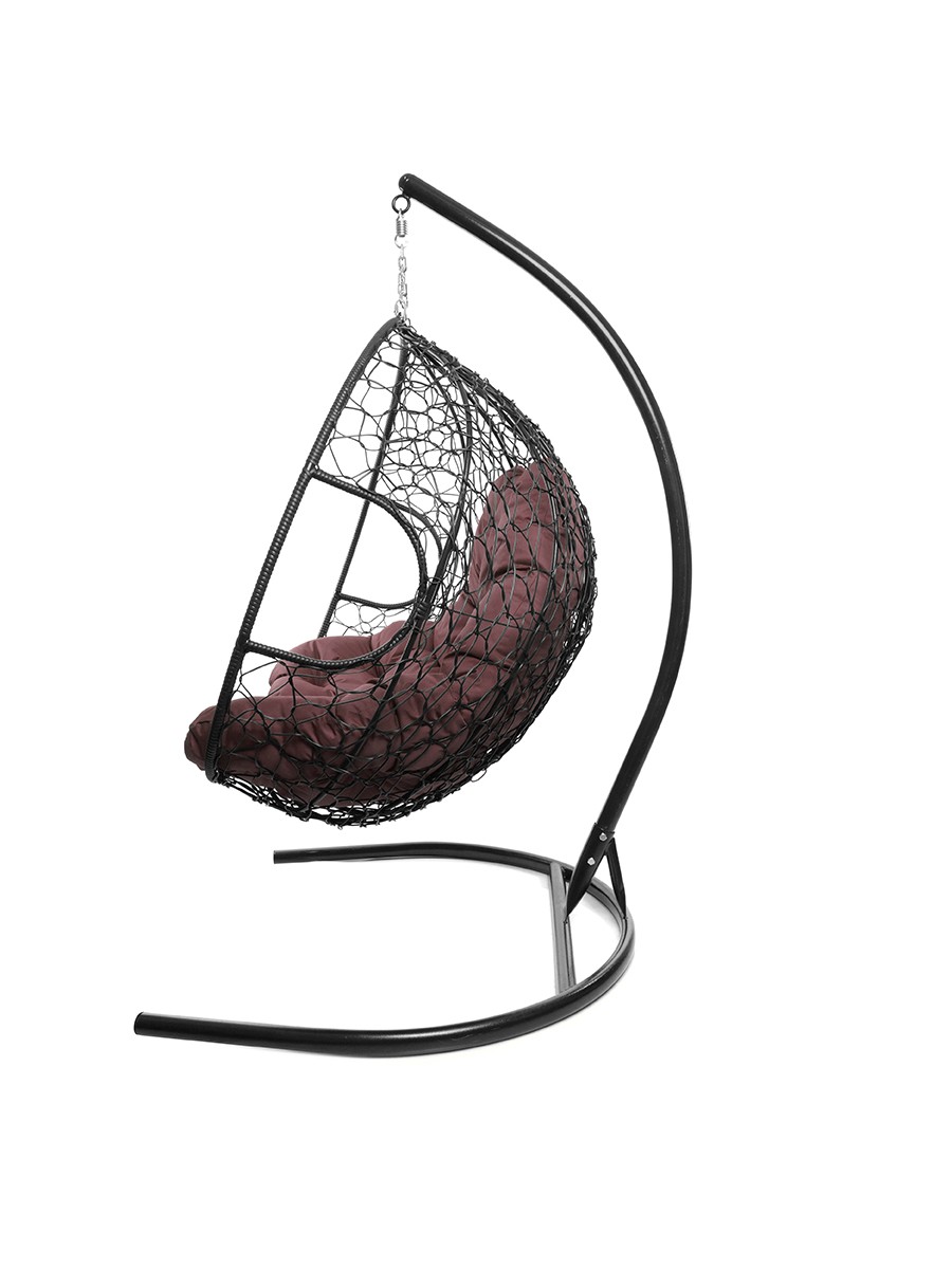 Подвесное кресло из ротанга "Для двоих" цвет: Чёрный; подушка: Бордо Чёрный/Бордо