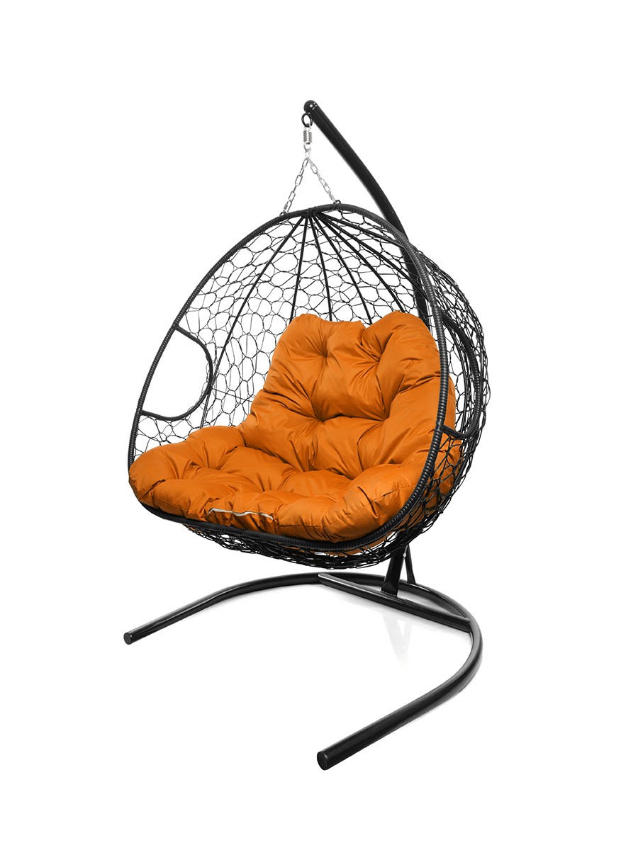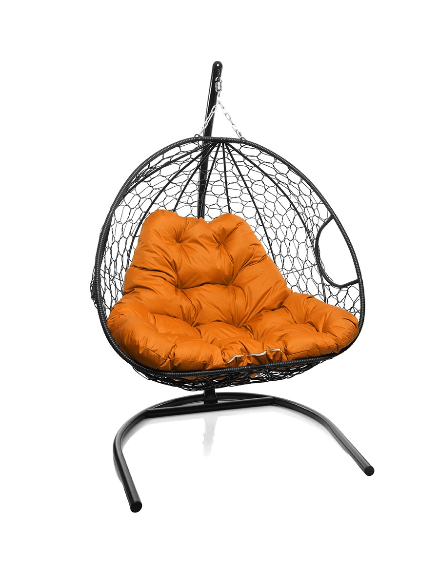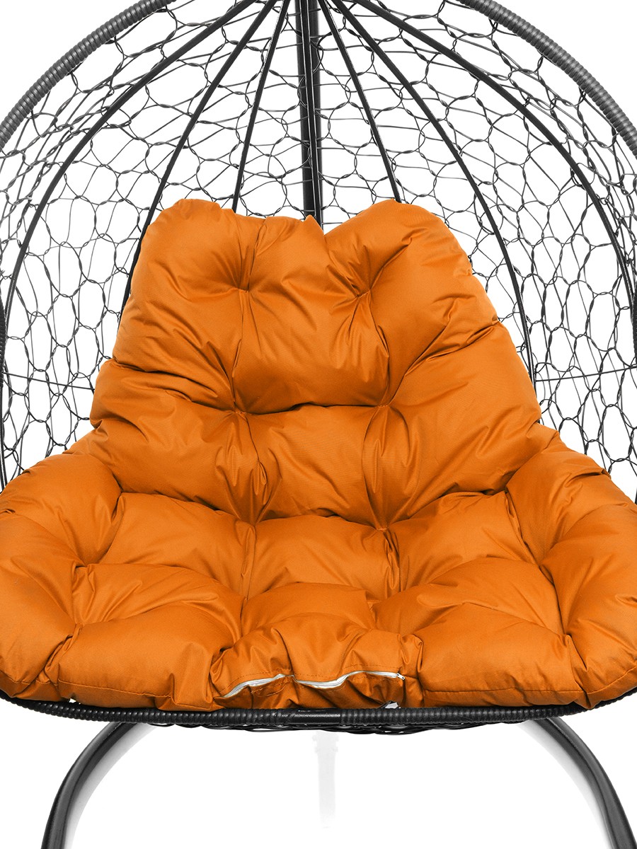 Подвесное кресло из ротанга "Для двоих" цвет Чёрный; подушка: Оранжевая Чёрный/оранжевый
