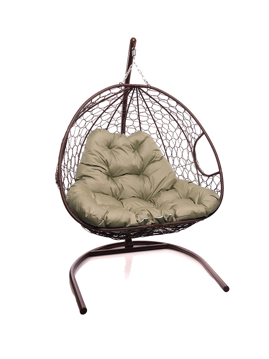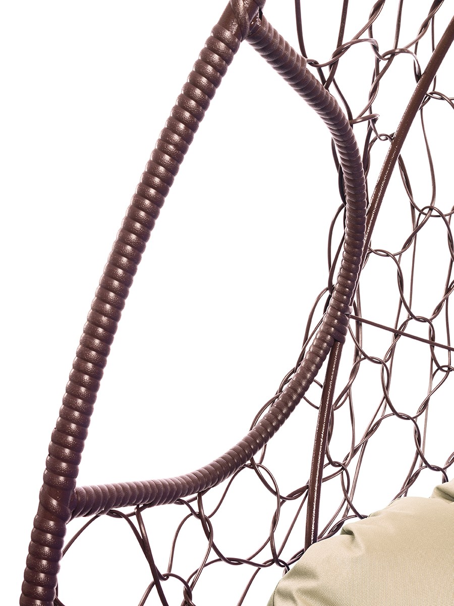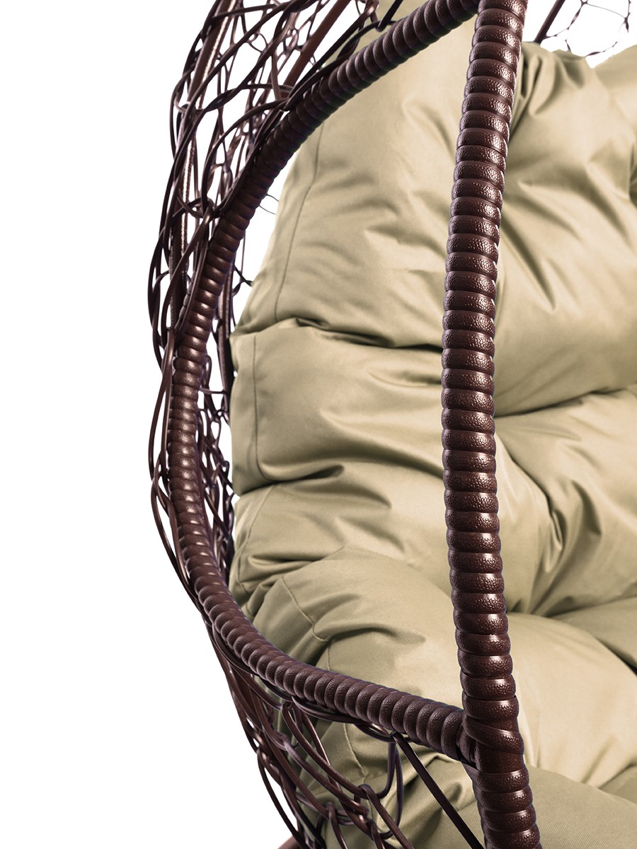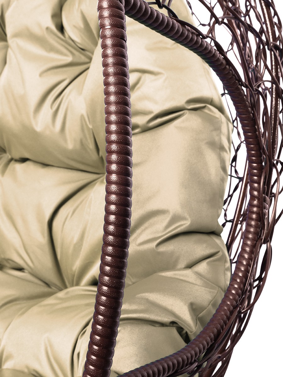 Подвесное кресло из ротанга "Для двоих" цвет: Коричневый; подушка: Бежевый коричневый/бежевый