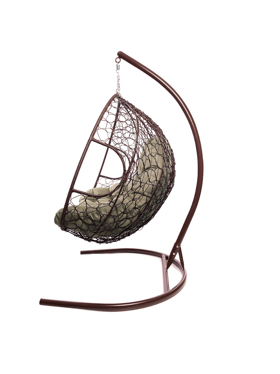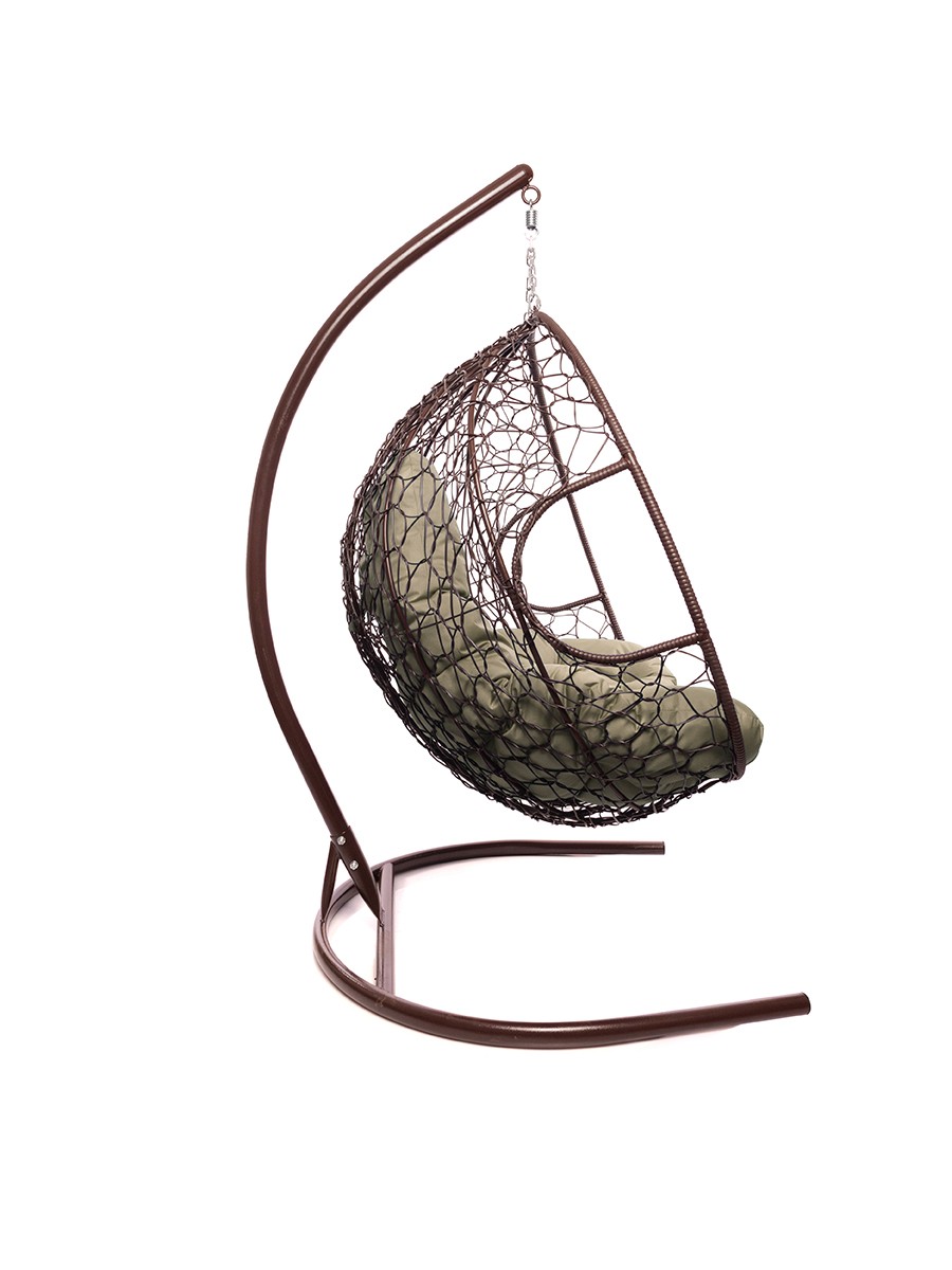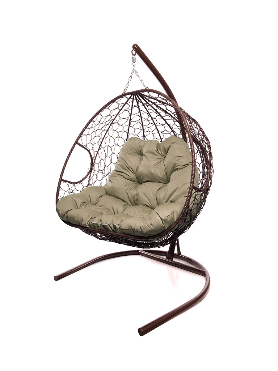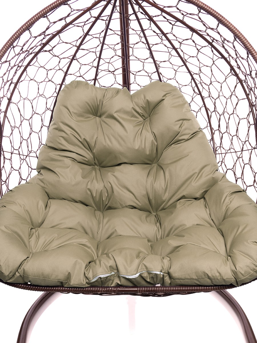 Подвесное кресло из ротанга "Для двоих" цвет: Коричневый; подушка: Бежевый коричневый/бежевый