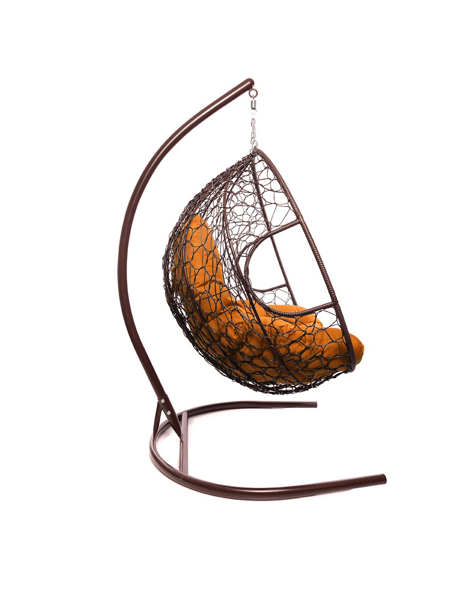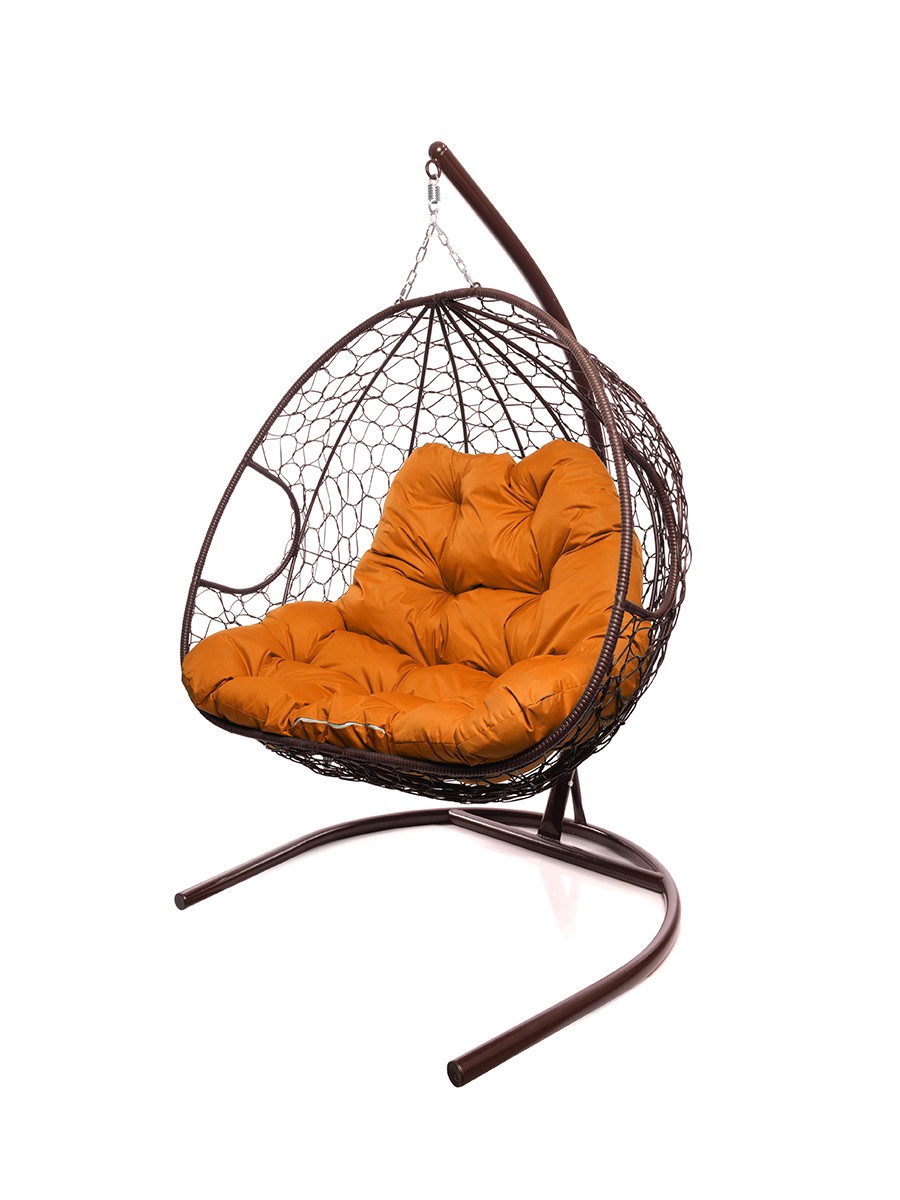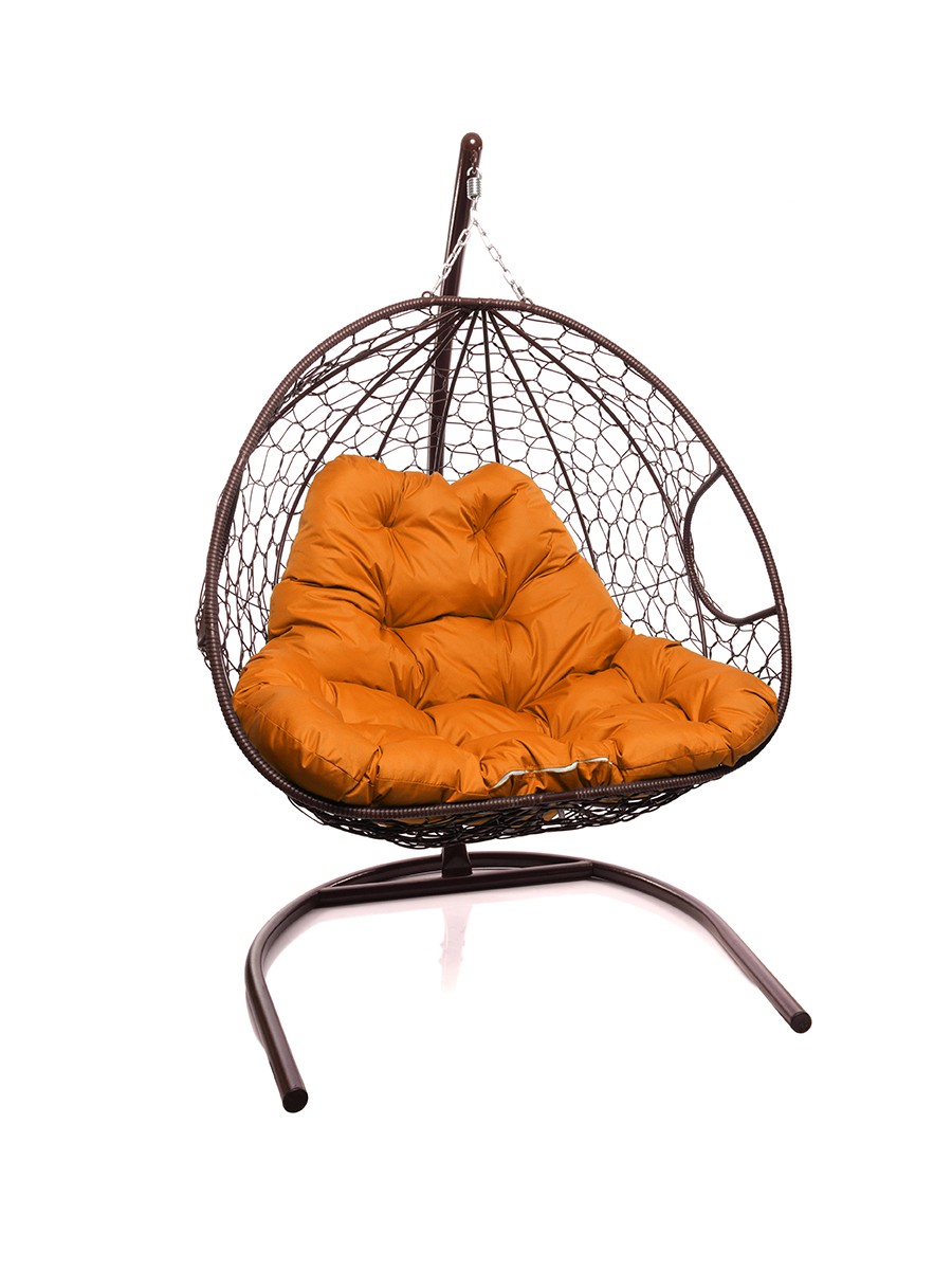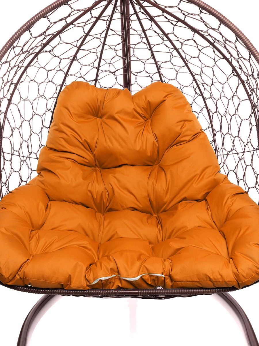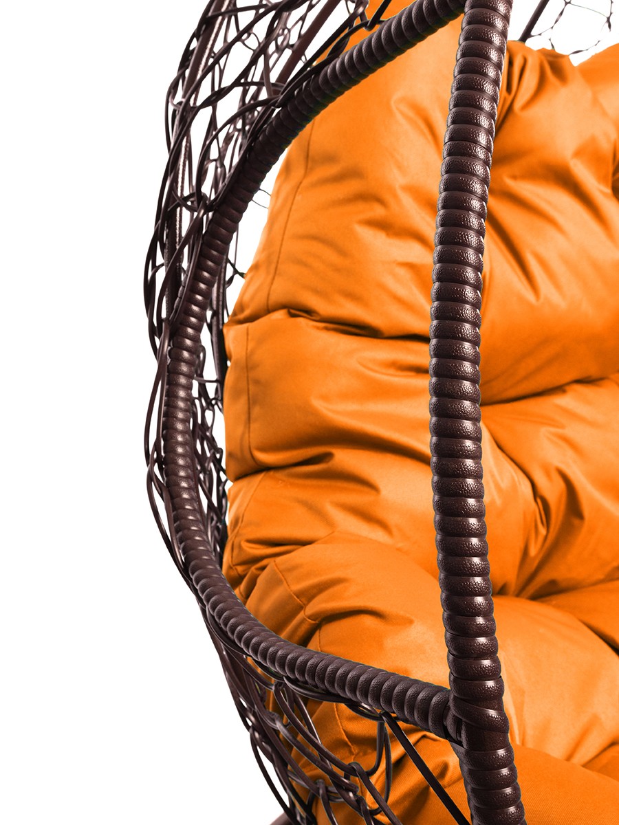 Подвесное кресло из ротанга "Для двоих" цвет Коричневый; подушка: Оранжевая Коричневый/Оранжевый