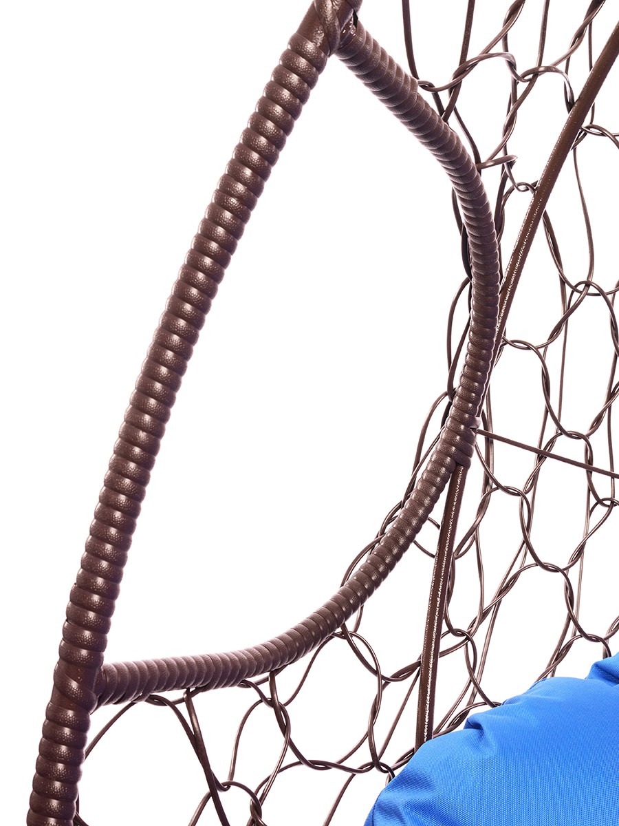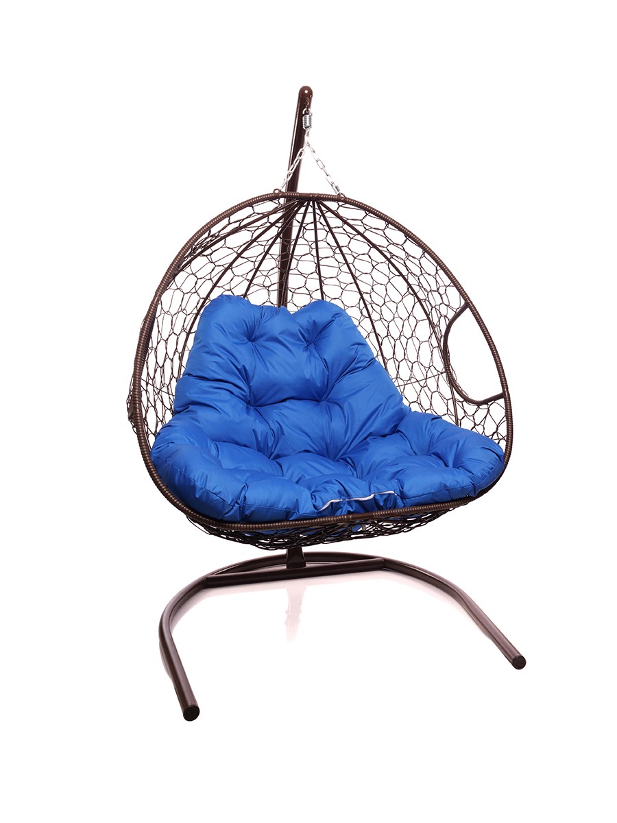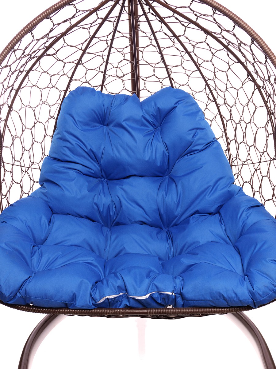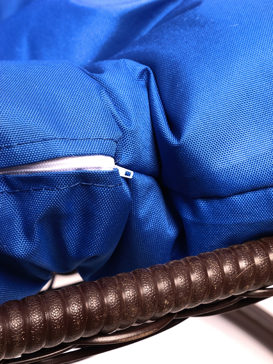 Подвесное кресло из ротанга "Для двоих" цвет Коричневый; подушка: Синий Коричневый/Ультрамарин