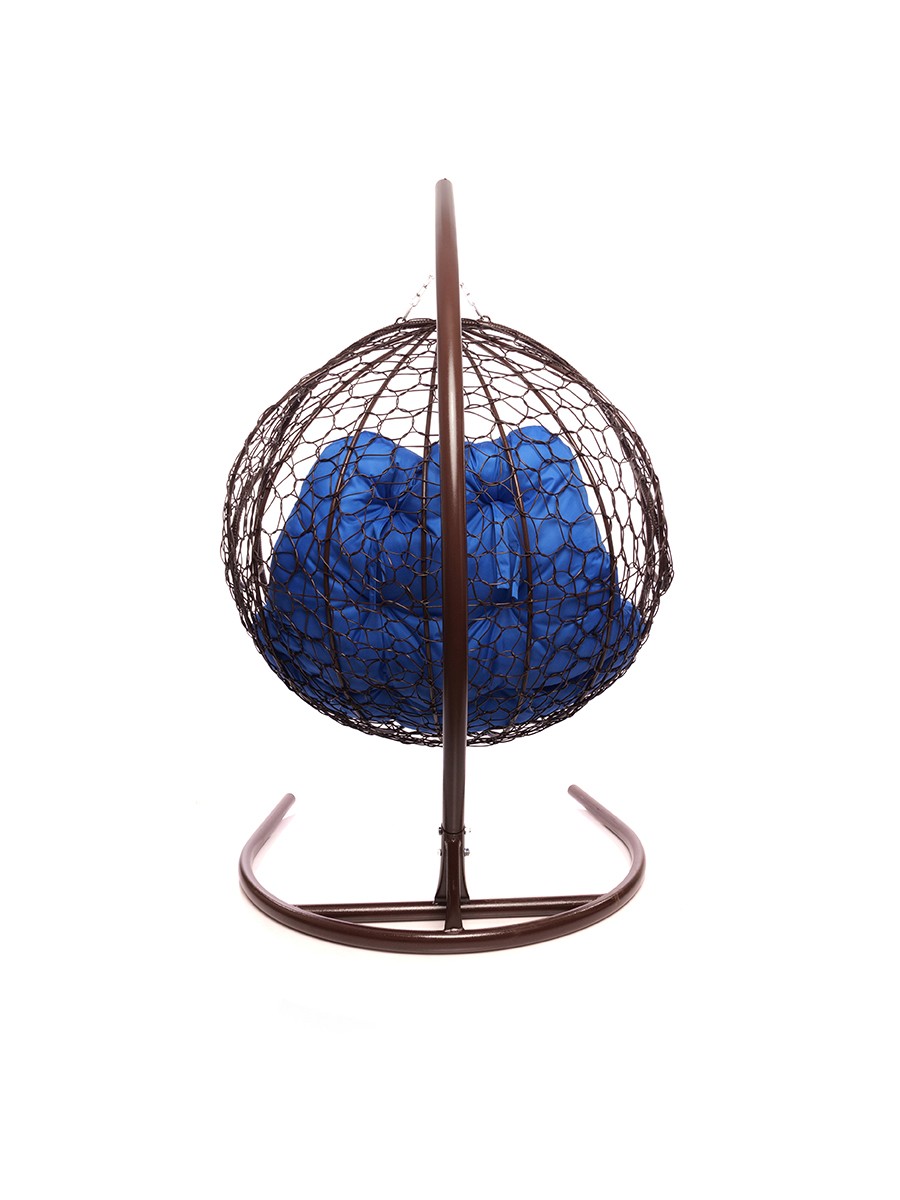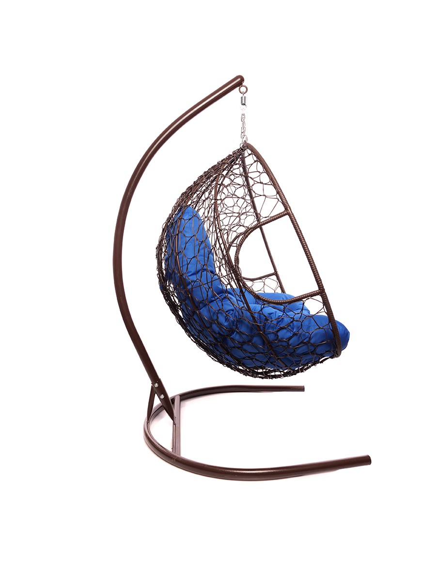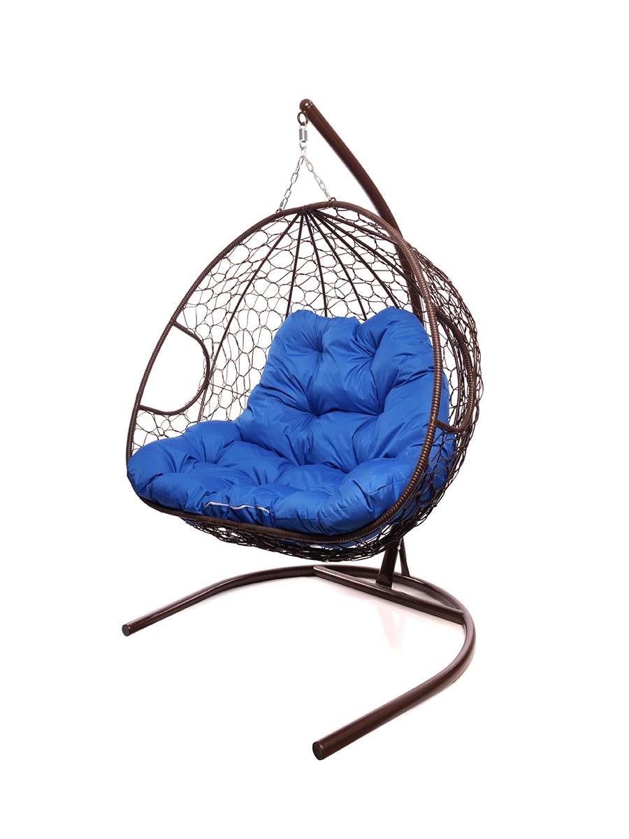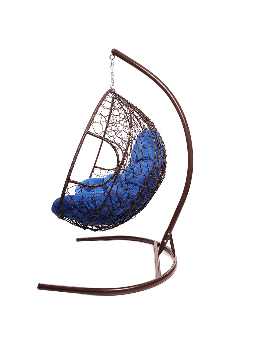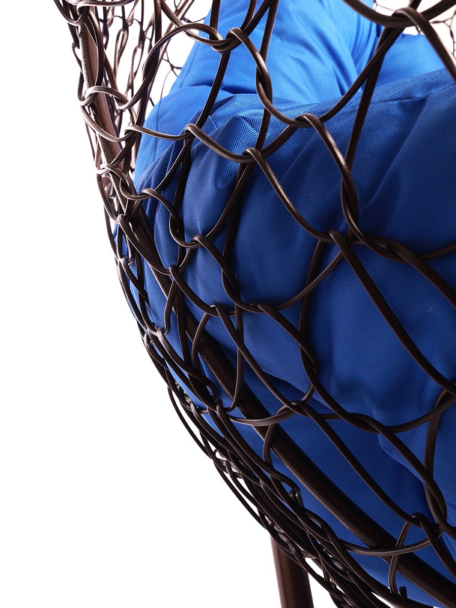 Подвесное кресло из ротанга "Для двоих" цвет Коричневый; подушка: Синий Коричневый/Ультрамарин