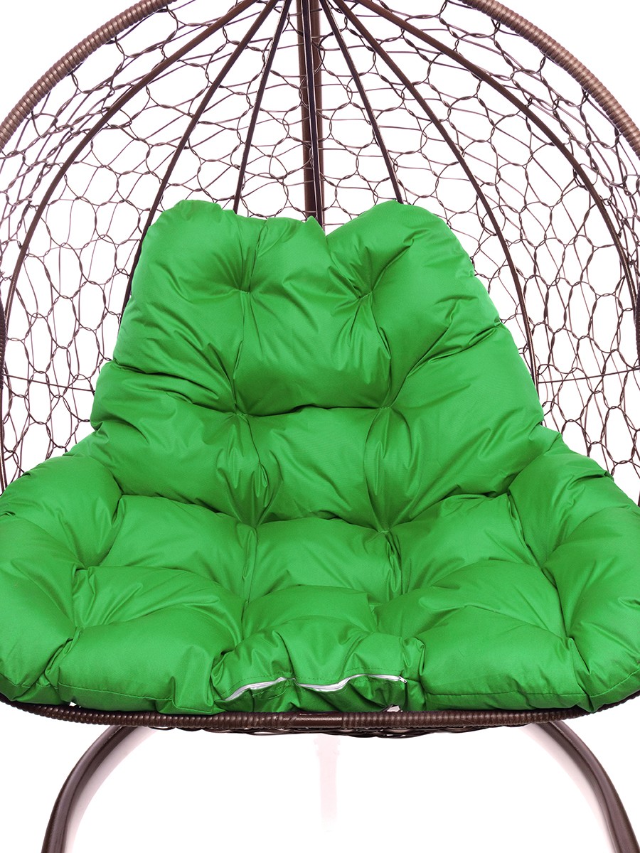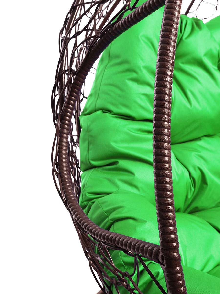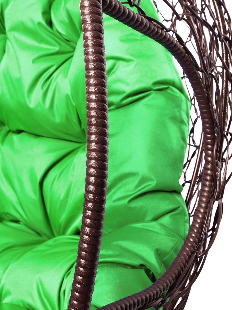 Подвесное кресло из ротанга "Для двоих" цвет Коричневый; подушка: Зелёная Коричневый/зеленый