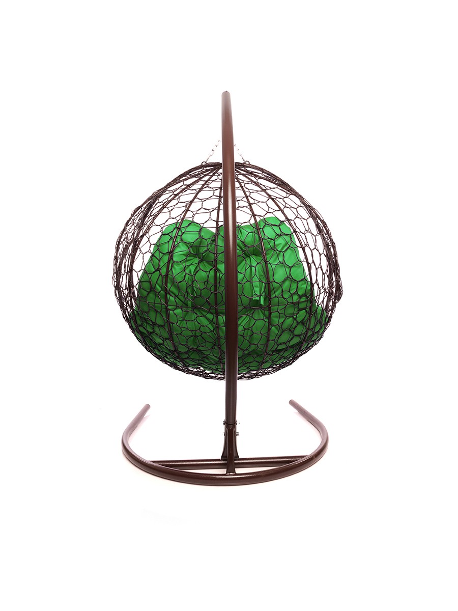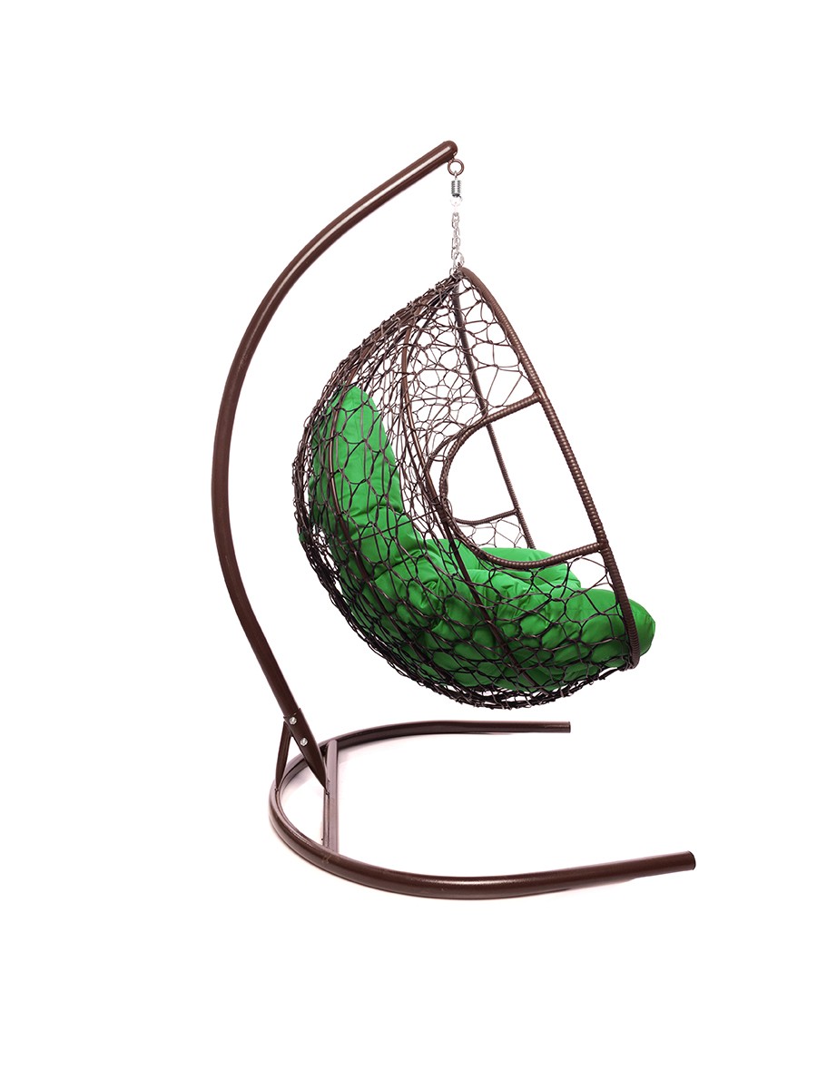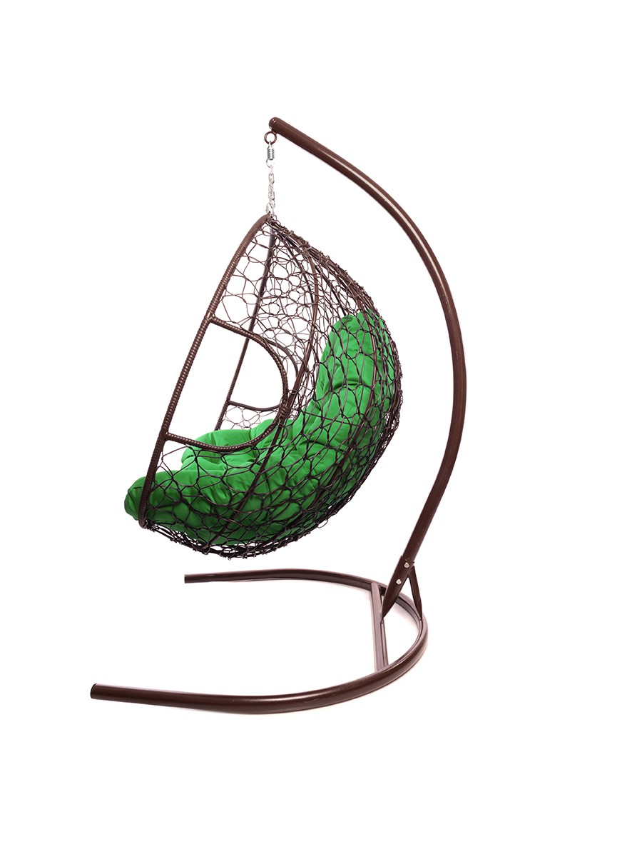 Подвесное кресло из ротанга "Для двоих" цвет Коричневый; подушка: Зелёная Коричневый/зеленый