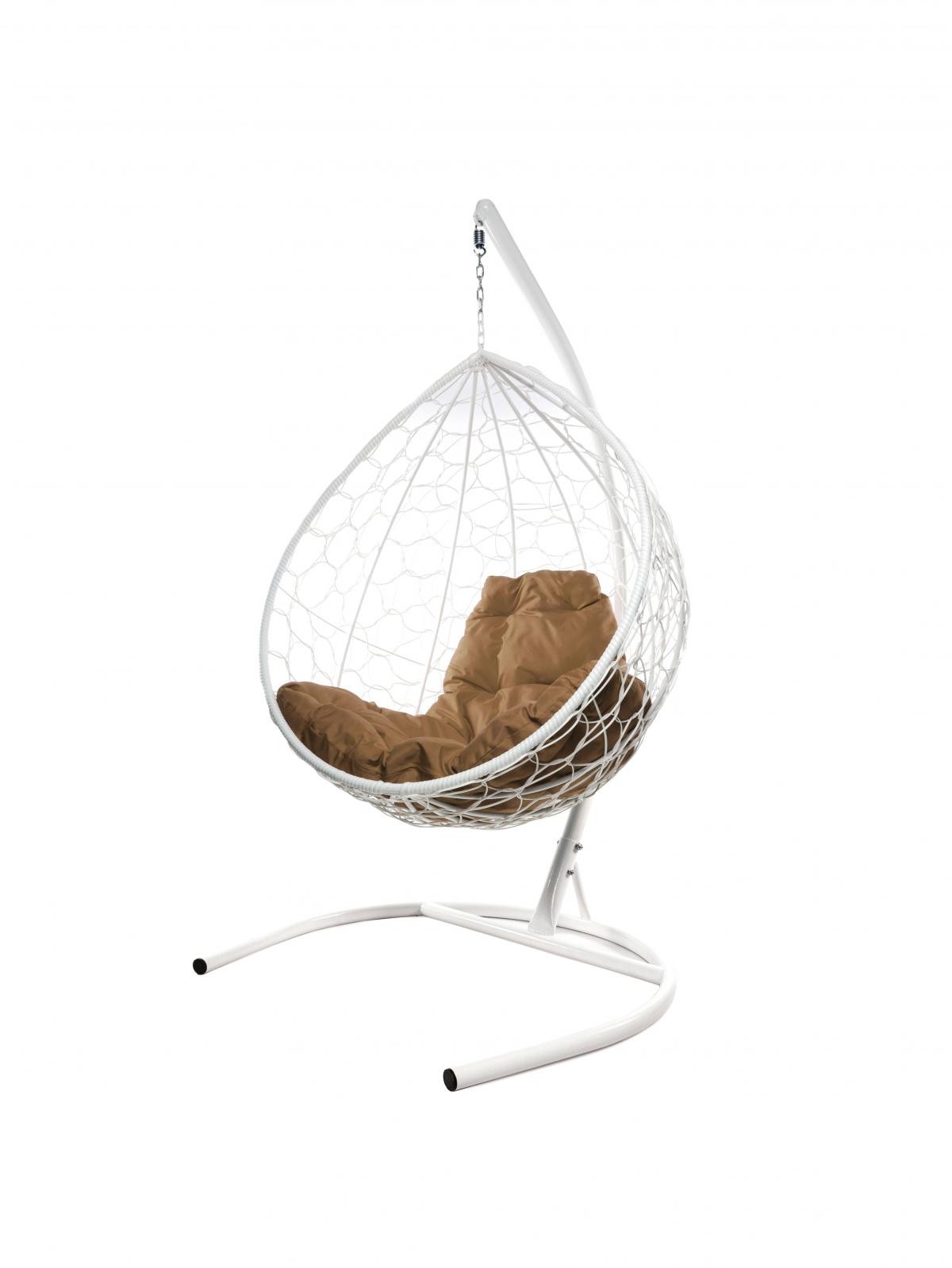 Подвесное кресло из ротанга "Капля" цвет: Белый; подушка: Бежевый Белый/Бежевый