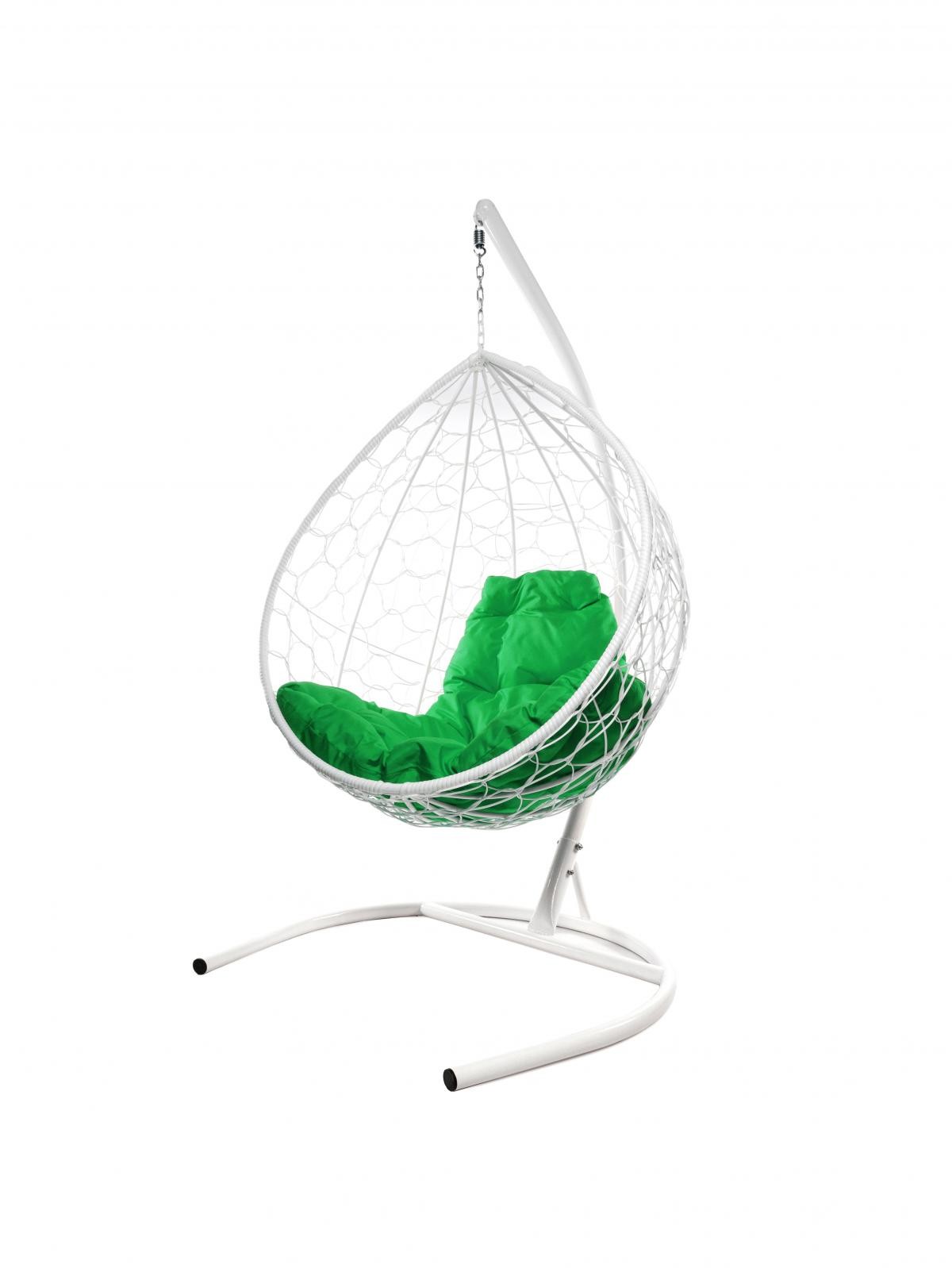 Подвесное кресло из ротанга "Капля" цвет: Белый; подушка: Зелёная