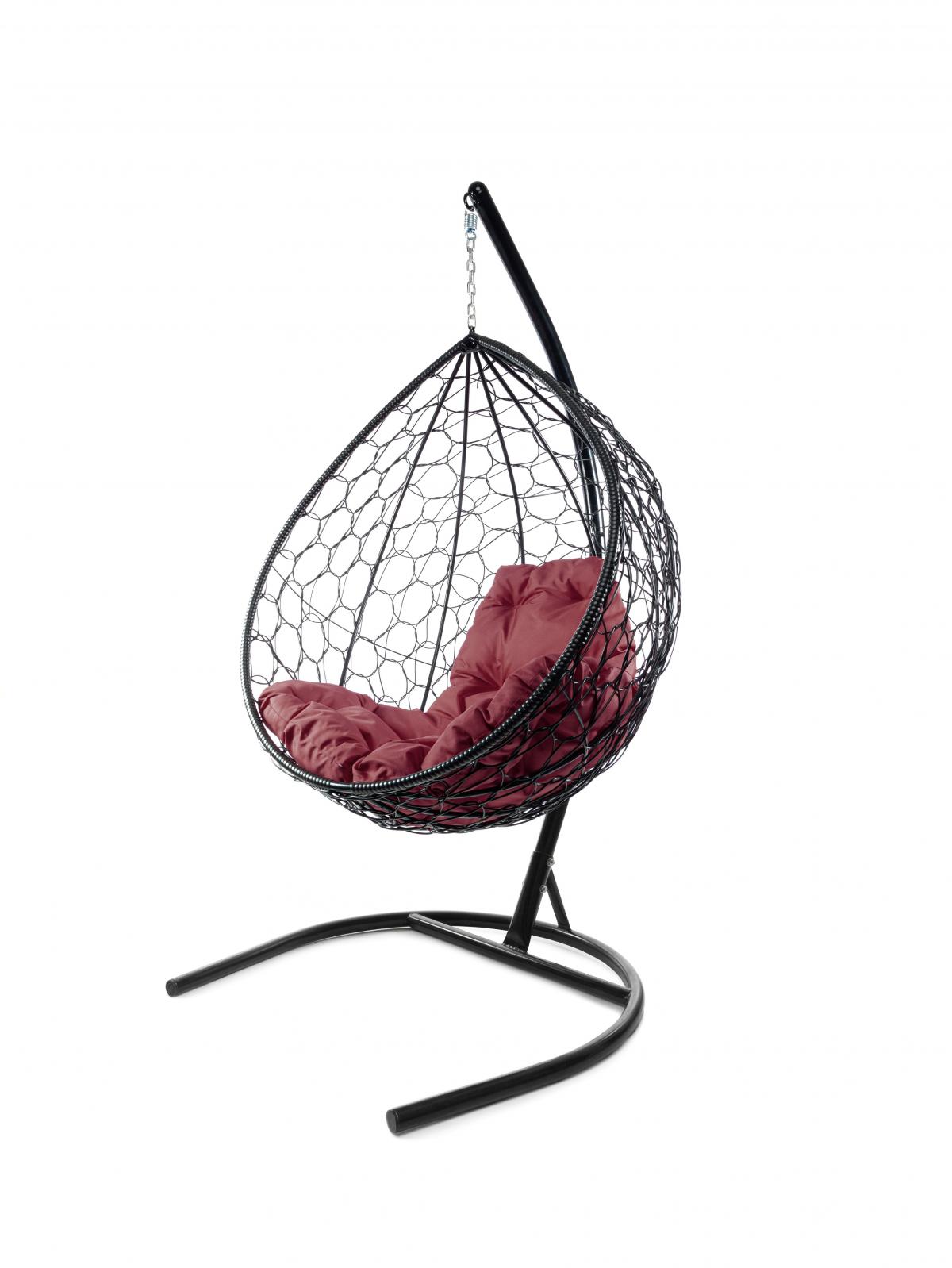 Подвесное кресло из ротанга "Капля" цвет: Чёрный; подушка: Бордо