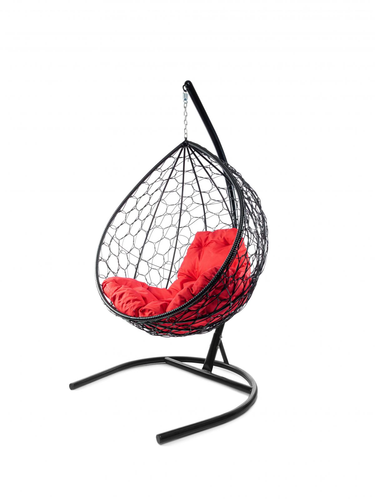 Подвесное кресло из ротанга "Капля" цвет: Чёрный; подушка: Красная