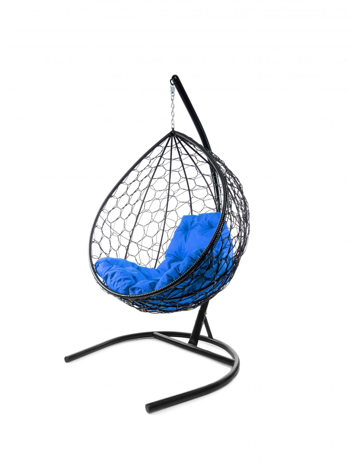 Подвесное кресло из ротанга "Капля" цвет: Чёрный; подушка: Синяя
