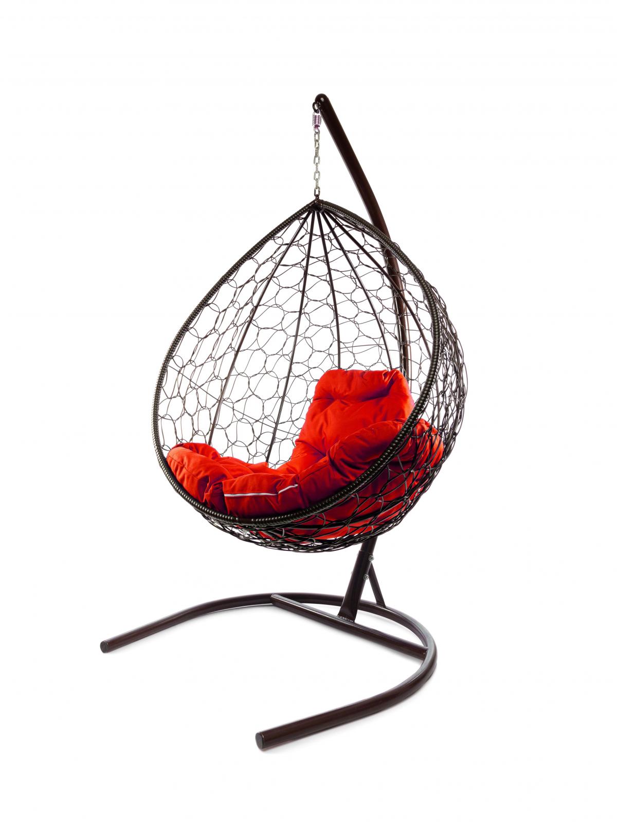 Подвесное кресло из ротанга "Капля" цвет: Коричневый; подушка: Красная