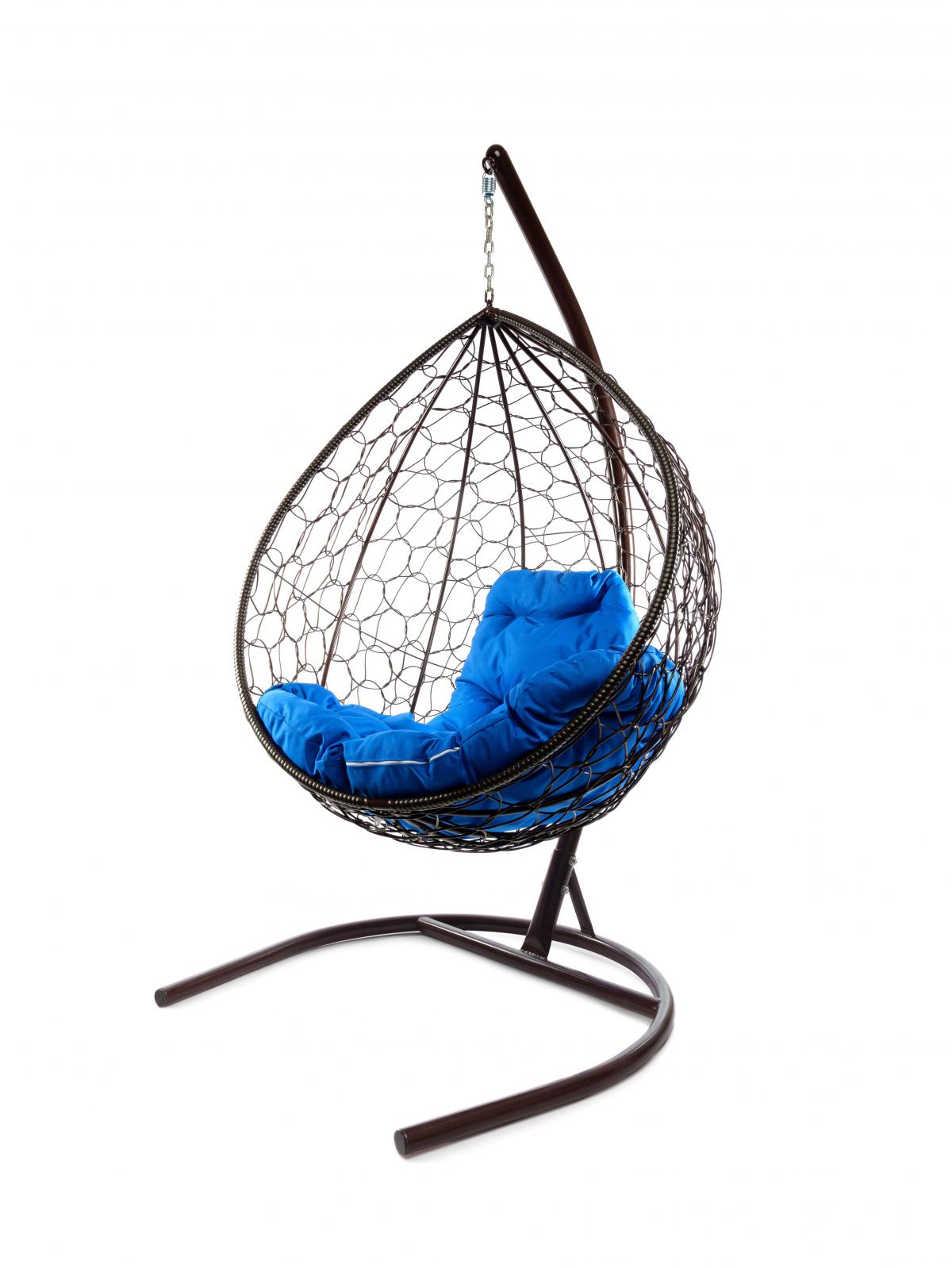 Подвесное кресло из ротанга "Капля" цвет: Коричневый; подушка: Синяя