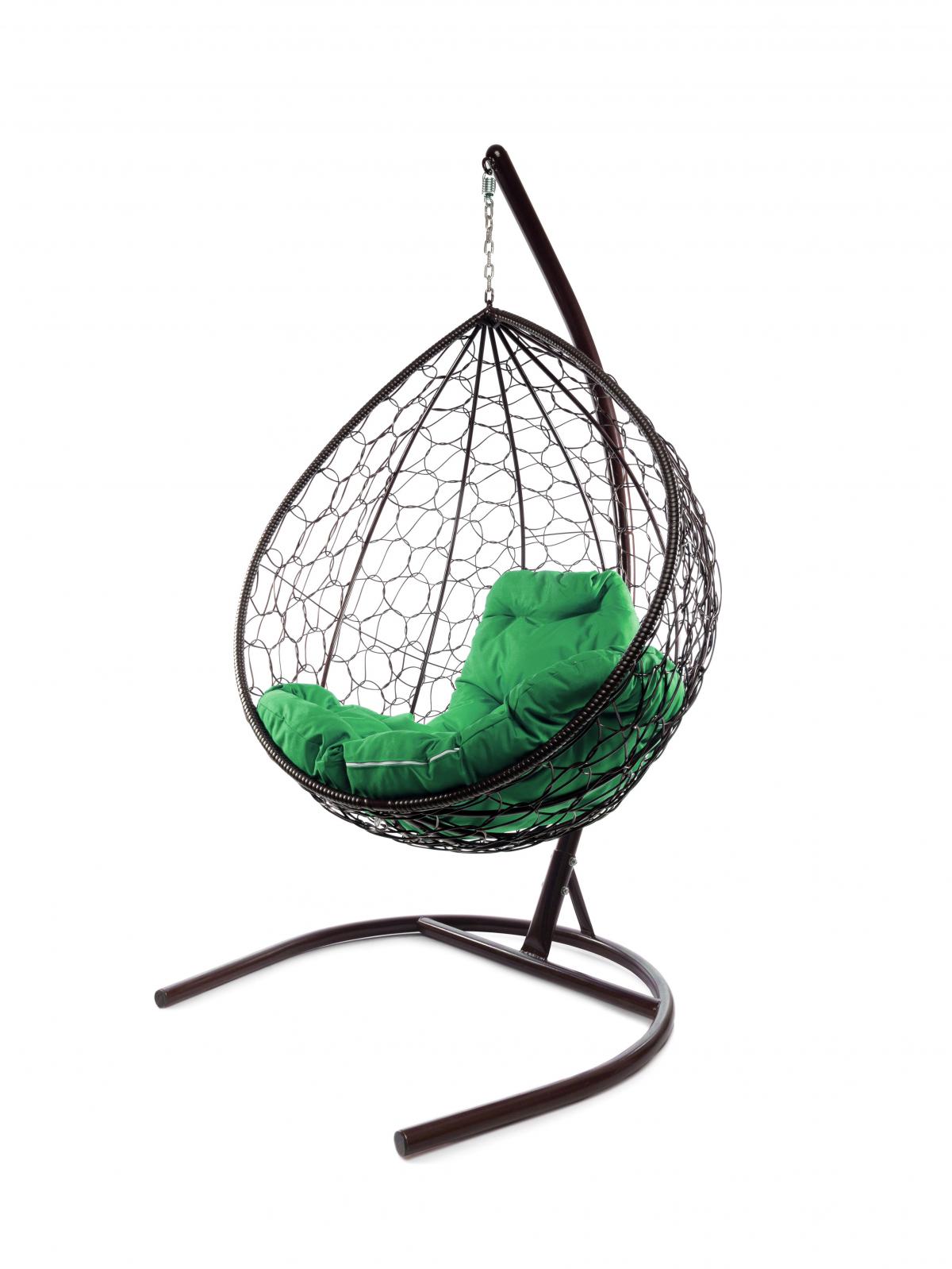Подвесное кресло из ротанга "Капля" цвет: Коричневый; подушка: Зелёная