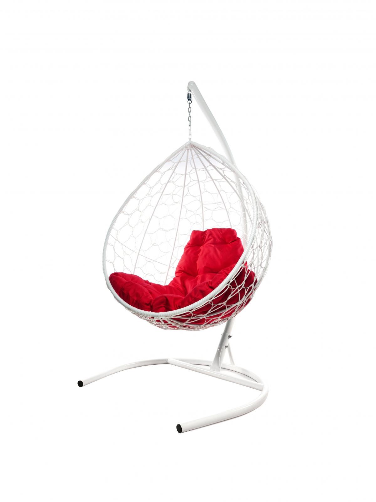Подвесное кресло из ротанга "Капля" цвет: Белый; подушка: красная