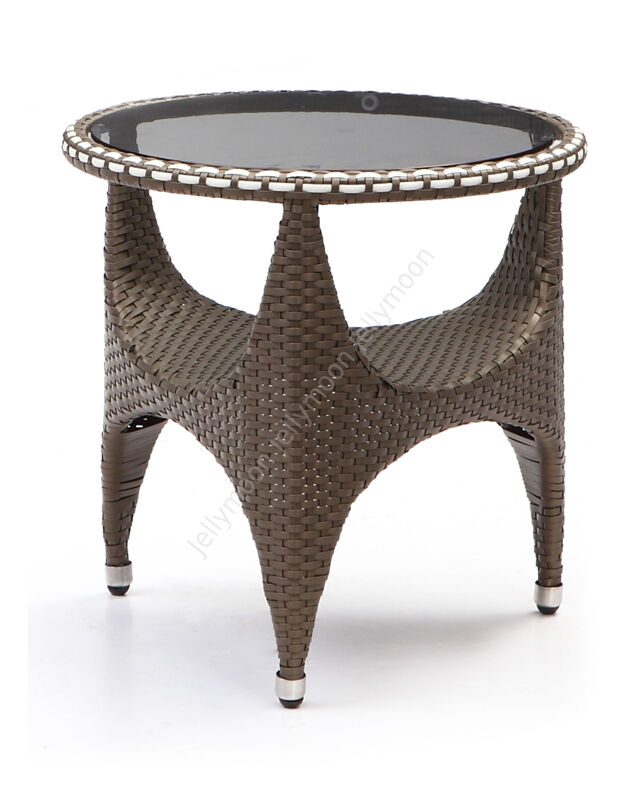 - Плетеные круглые столы со стеклянной столешницей, которые идеально впишутся в интерьер гостиницы, кафе или санатория;