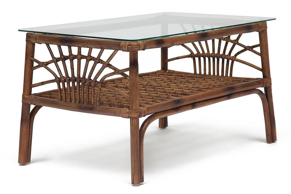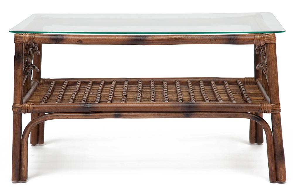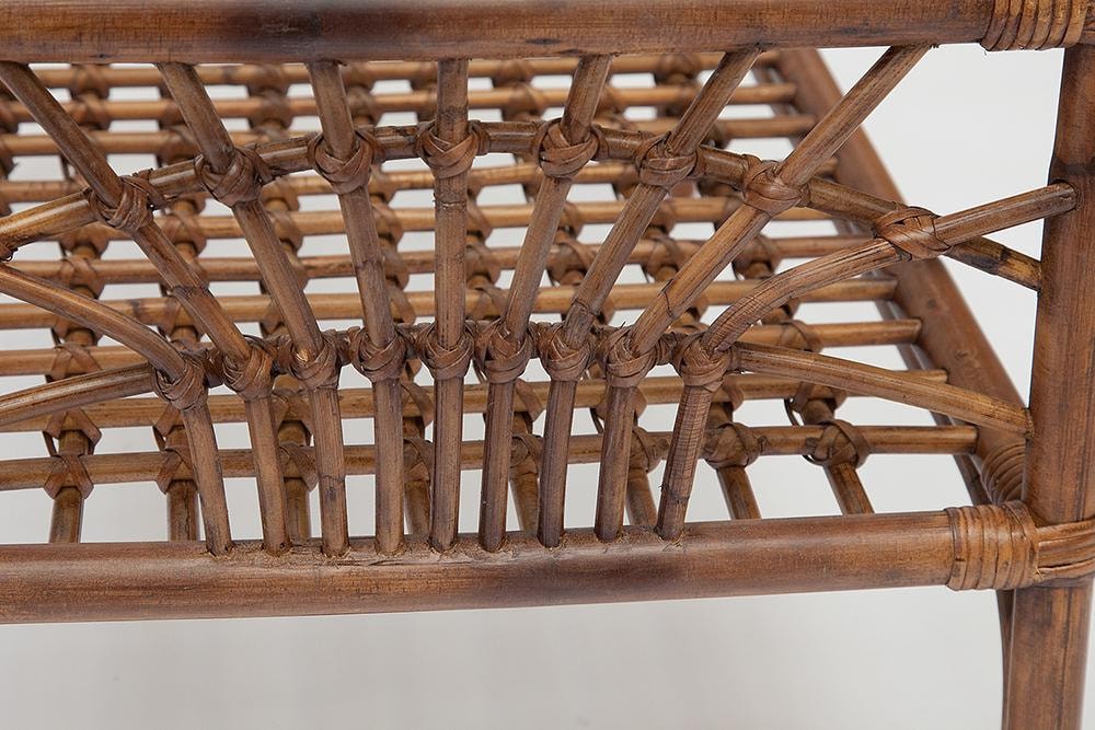 Материал: основание - натуральный ротанг, столешница - закалённое стекло. Цвет: античный коричневый /brown antique. Размеры: 83х53х47 см