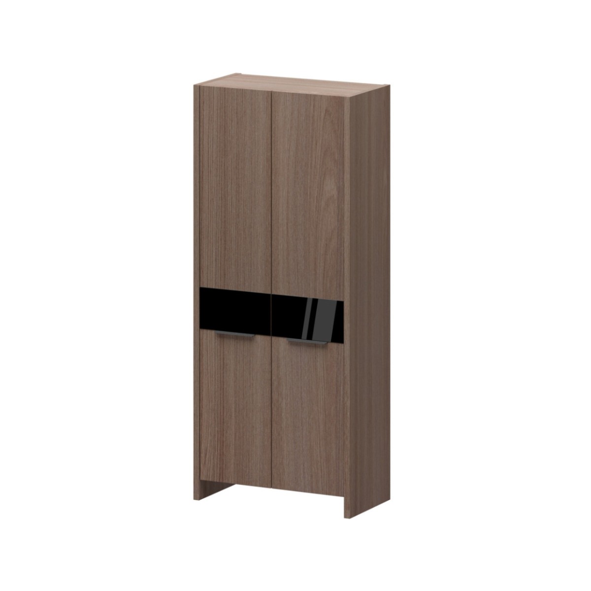 Гардероб Акцент Lux КТ-44.38 Темный шимо/ Стекло лакобель (черное) 856х438х1978 (Техно)