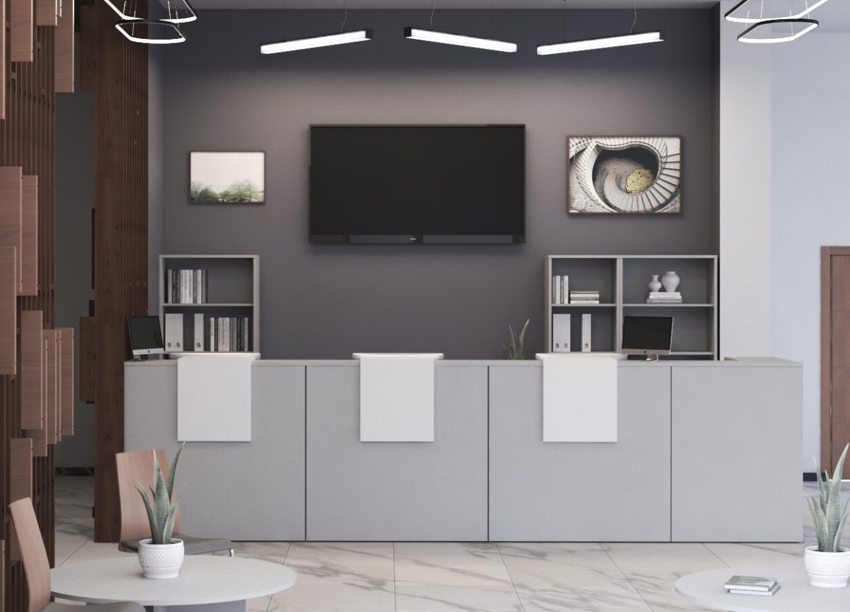Стойка ресепшен прямая Арго А-553 Белый 1460х360х1220 (Техно)
