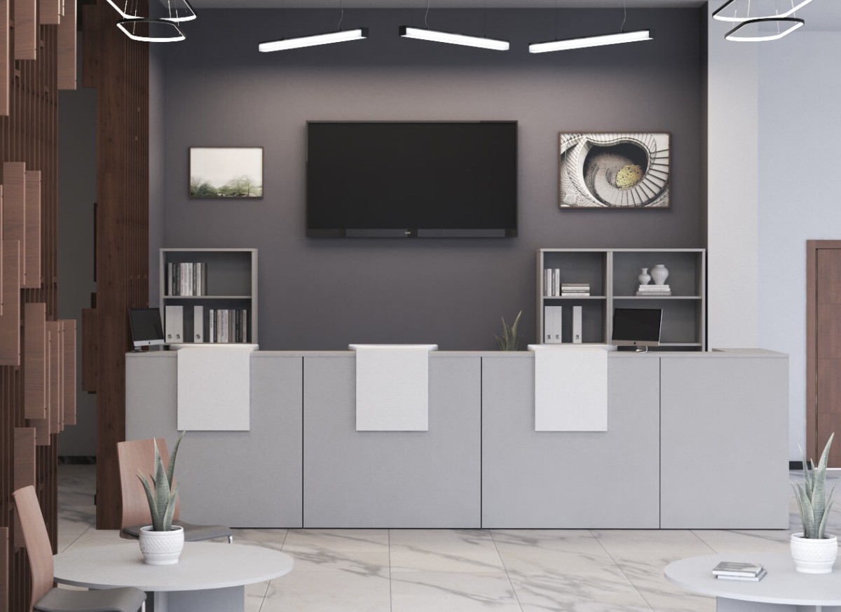 Стойка ресепшен прямая Арго А-553 Серый 1460х360х1220 (Техно)