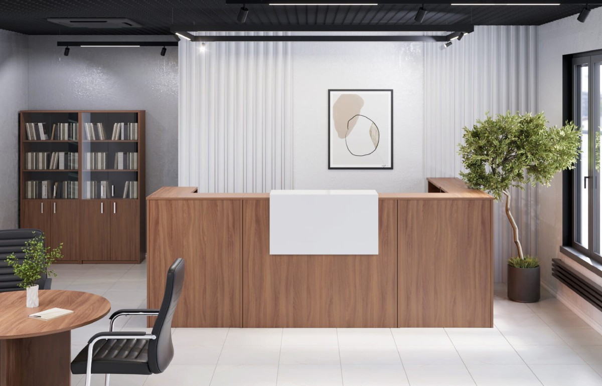 Стойка ресепшен прямая Арго А-553 Шимо Темный 1460х360х1220 (Техно)